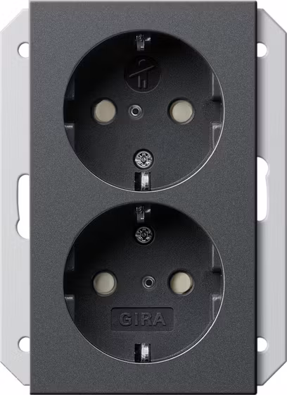 GIRA System 55 2-vägsuttag Lågt, AntracitSystem 55 2-vägsuttag Lågt för infällt montage i en 1,5-facks apparatdosa. Jordat och petskyddat för infällt montage. K