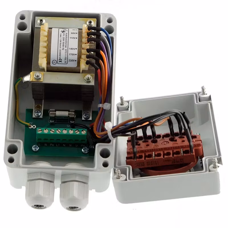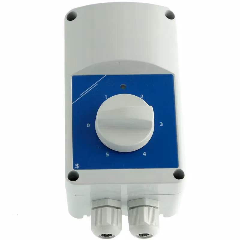 Kvalitetstransformator för manuell spänningsreglering i fem fasta spänningssteg med 0-läge. För varvtalsreglering av spänningsreglerbara enfas motorer. Regleringen sker med hjälp av omkopplaren på kåpans front.