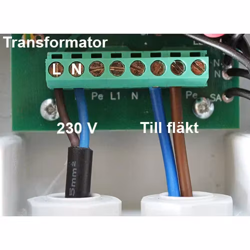 Driftindikeringslampa finns på kåpan. Den stabila kapslingen är tillverkad av PVC. OBS ej EC-fläktar.