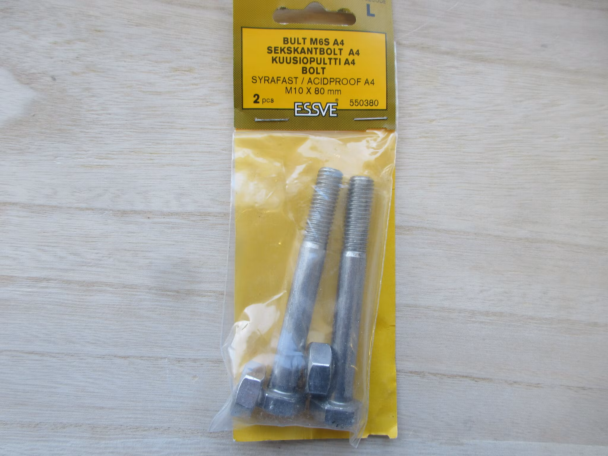 ESSVE Bult M6S A4 Syrafast M10x80 mm. 2 st.Antal: Bult 2 st. Mutter 2 st.Artnr 550380EAN 7317765503800