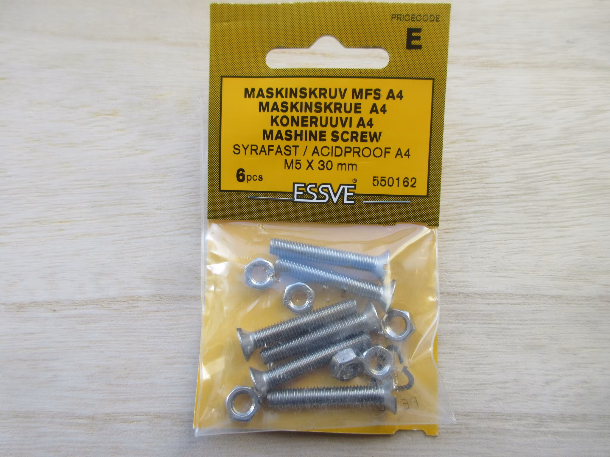 ESSVE Maskinskruv MFS A4 Syrafast M5x30 mm. 6 st.Antal Maskinskruv 6 st. Mutter 8 st.Artnr 550162EAN 7317765501622