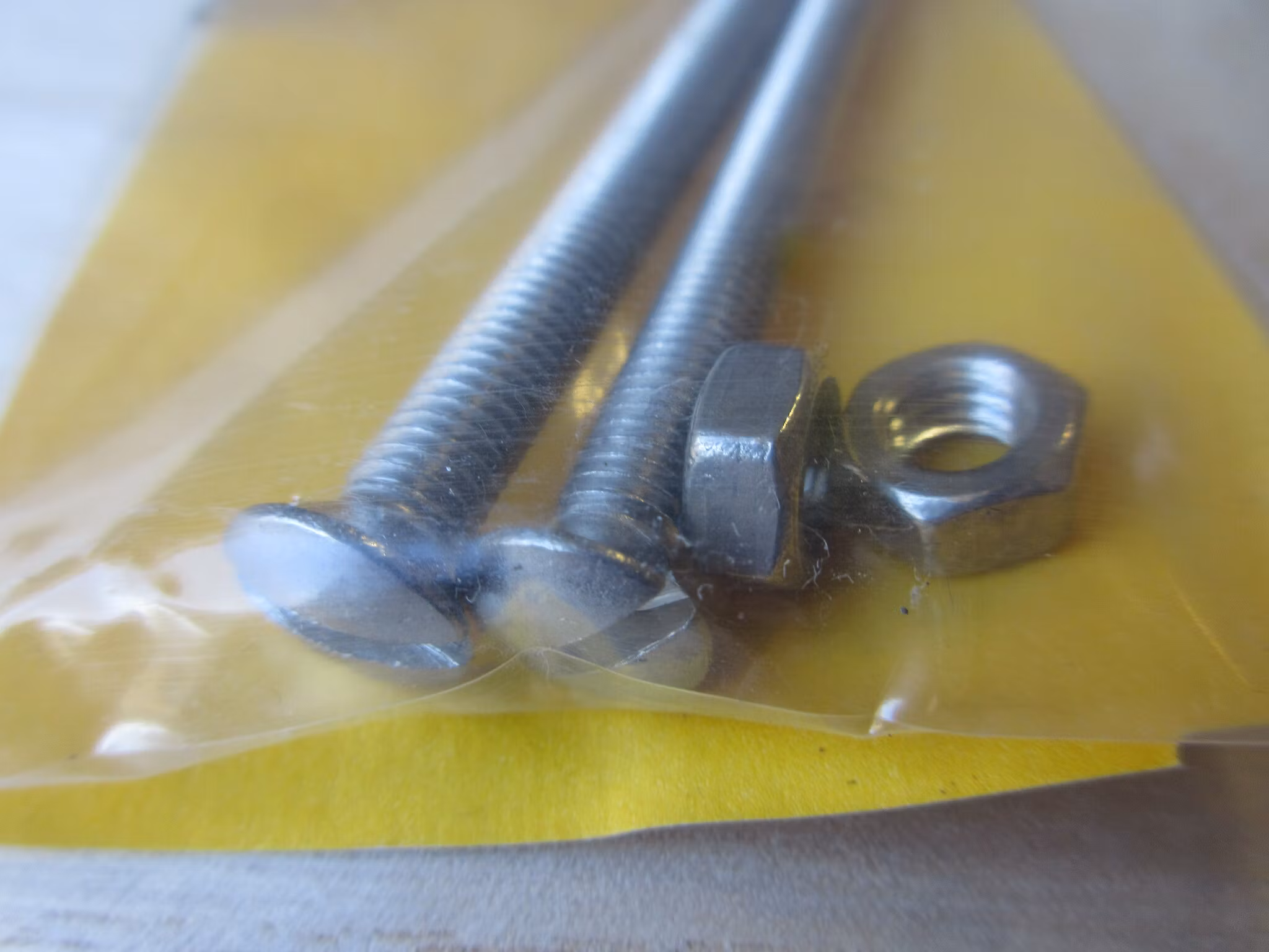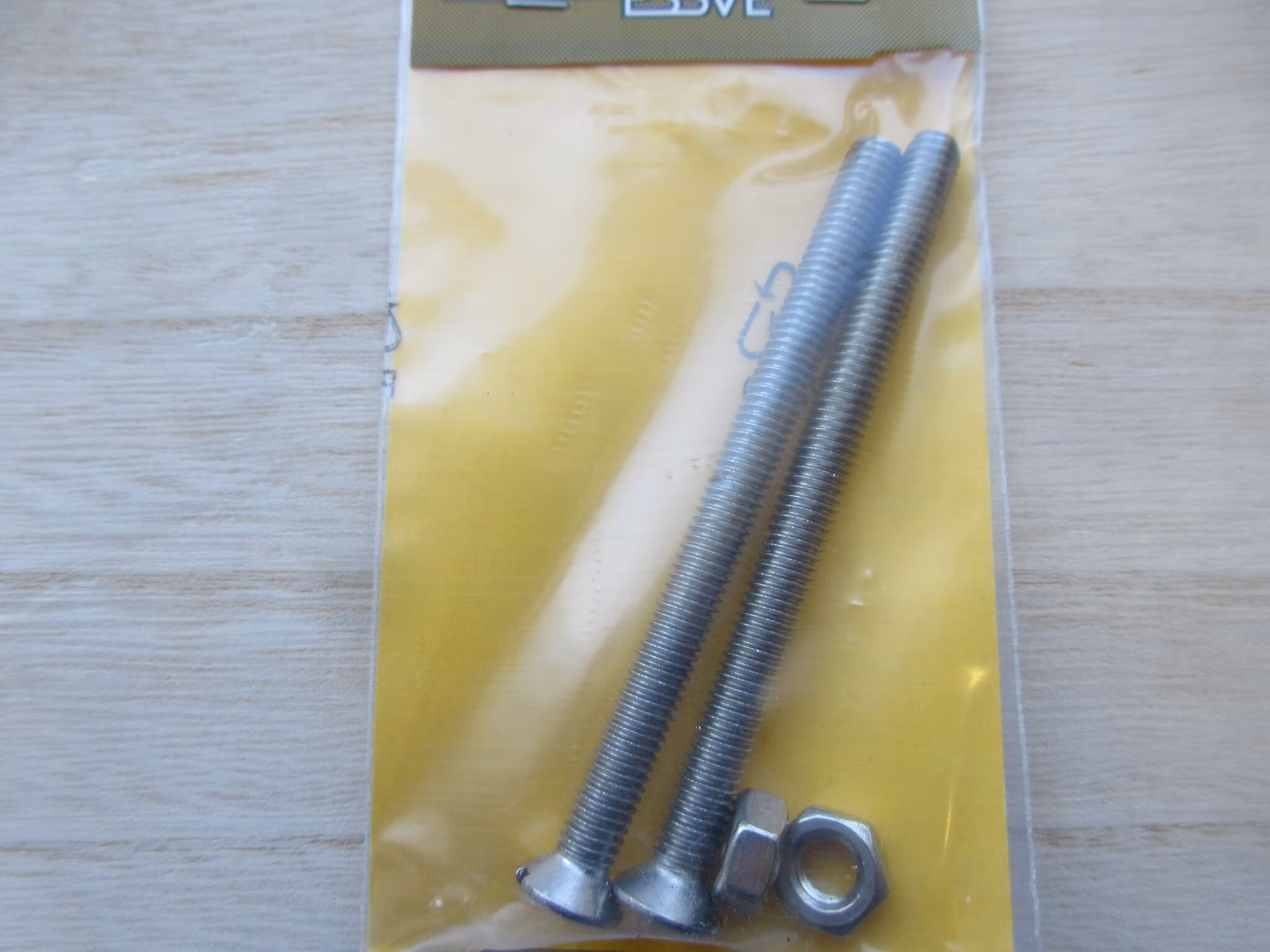 Kullerförsäkt maskinskruv med mutter och syrafast A4 ytbehandling.