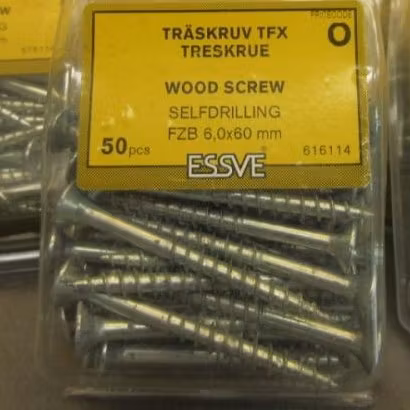 ESSVE Träskruv TFX FZB 6,0x60 mm. 50 st.SelfdrillingAntal: 50 st. i blisterpackVarumärke: ESSVELeverantörs art nr: 616114EAN 7317766161146