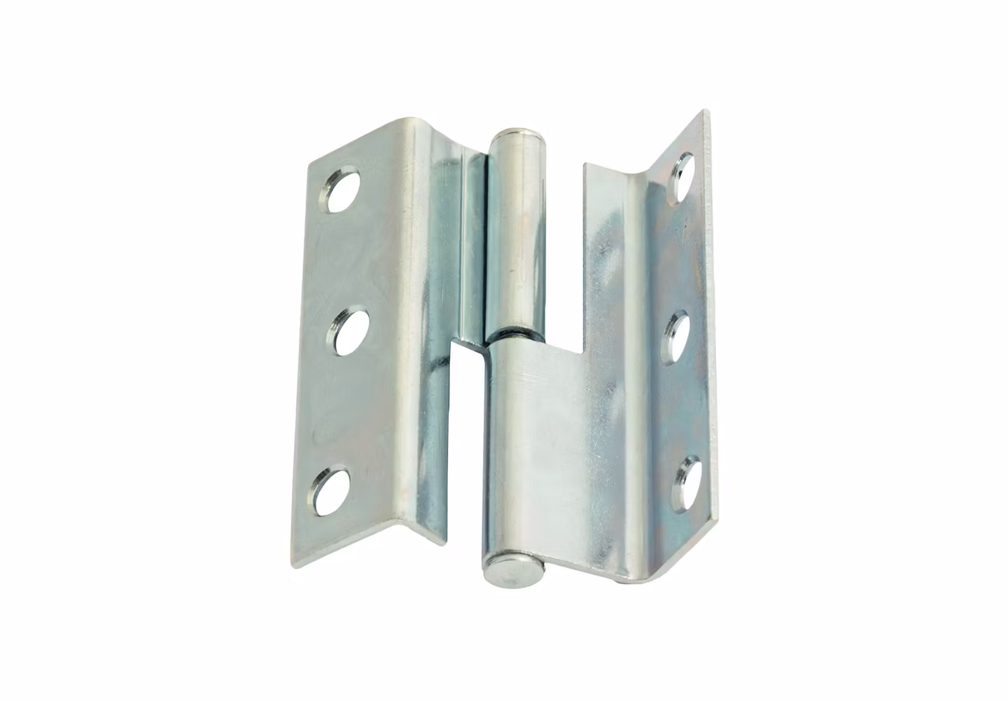 Vinkelbockat lyftångjärn av stål för överfalsmått 10 mm i vänstermodell. SB-pack levereras inklusive skruv. Ytbehandling Elzink.
