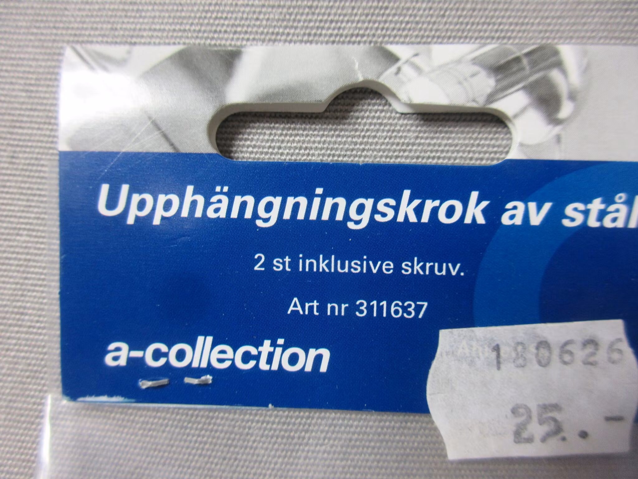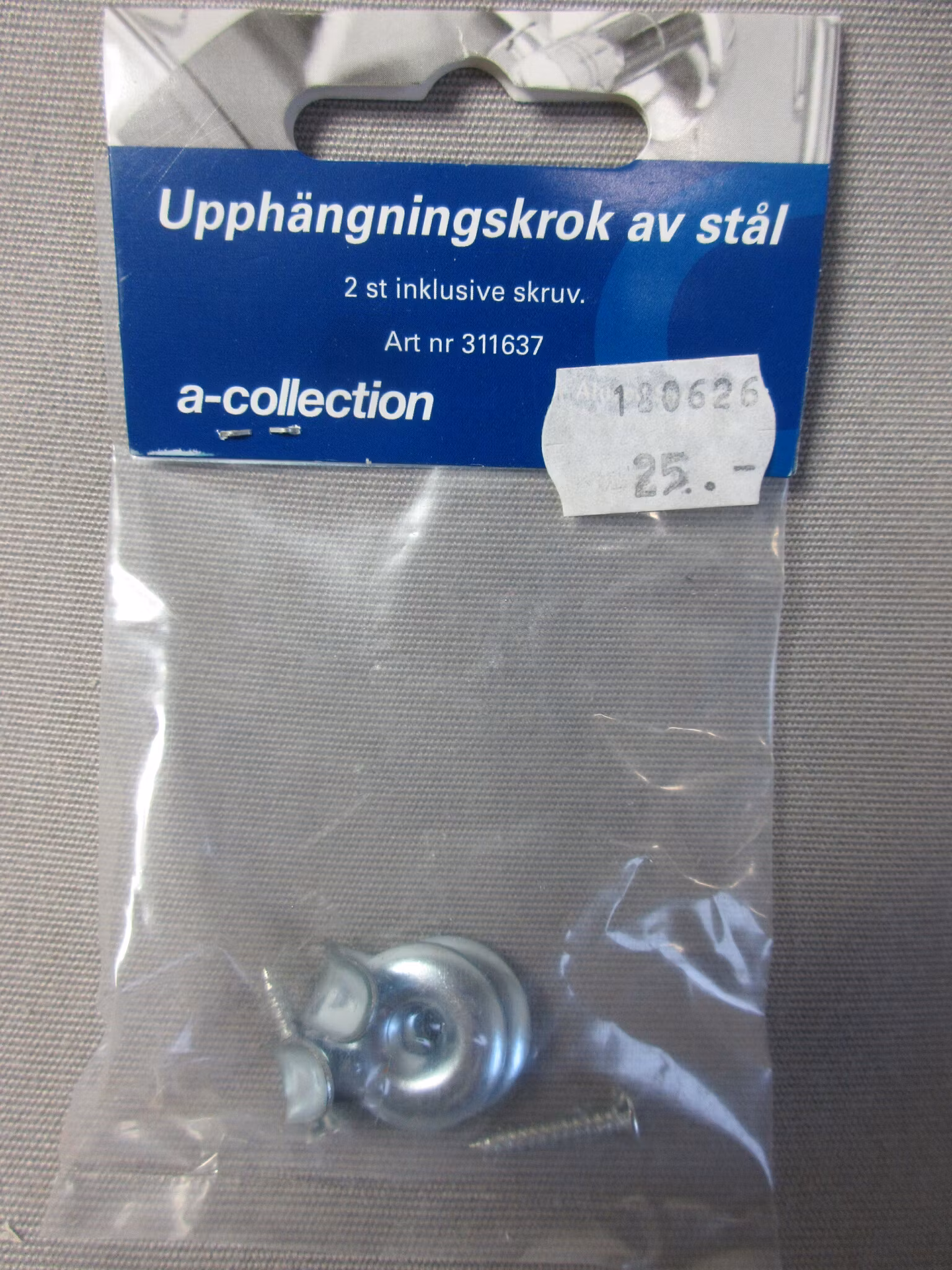 a-collection Upphängningskrok av stål, 2 st.Upphängningskrok för papperskorg A366.Artikelnummer: 311637Antal 2 st. Inklusive skruv
