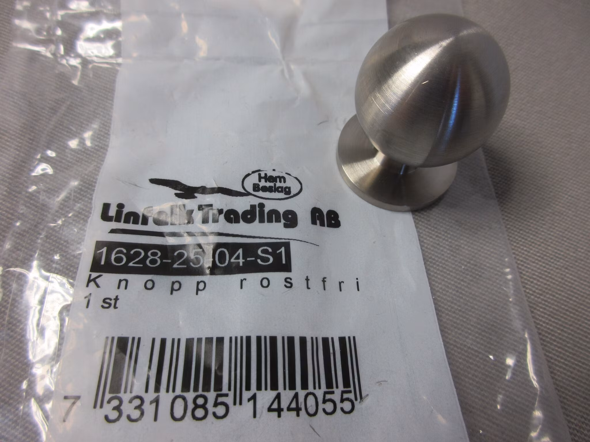 Linfalk Trading Knopp RostfriHöjd ca (mm): 33Diameter (mm): Ø25Material: MetallInkl 1 skruvEAN 7331085144055