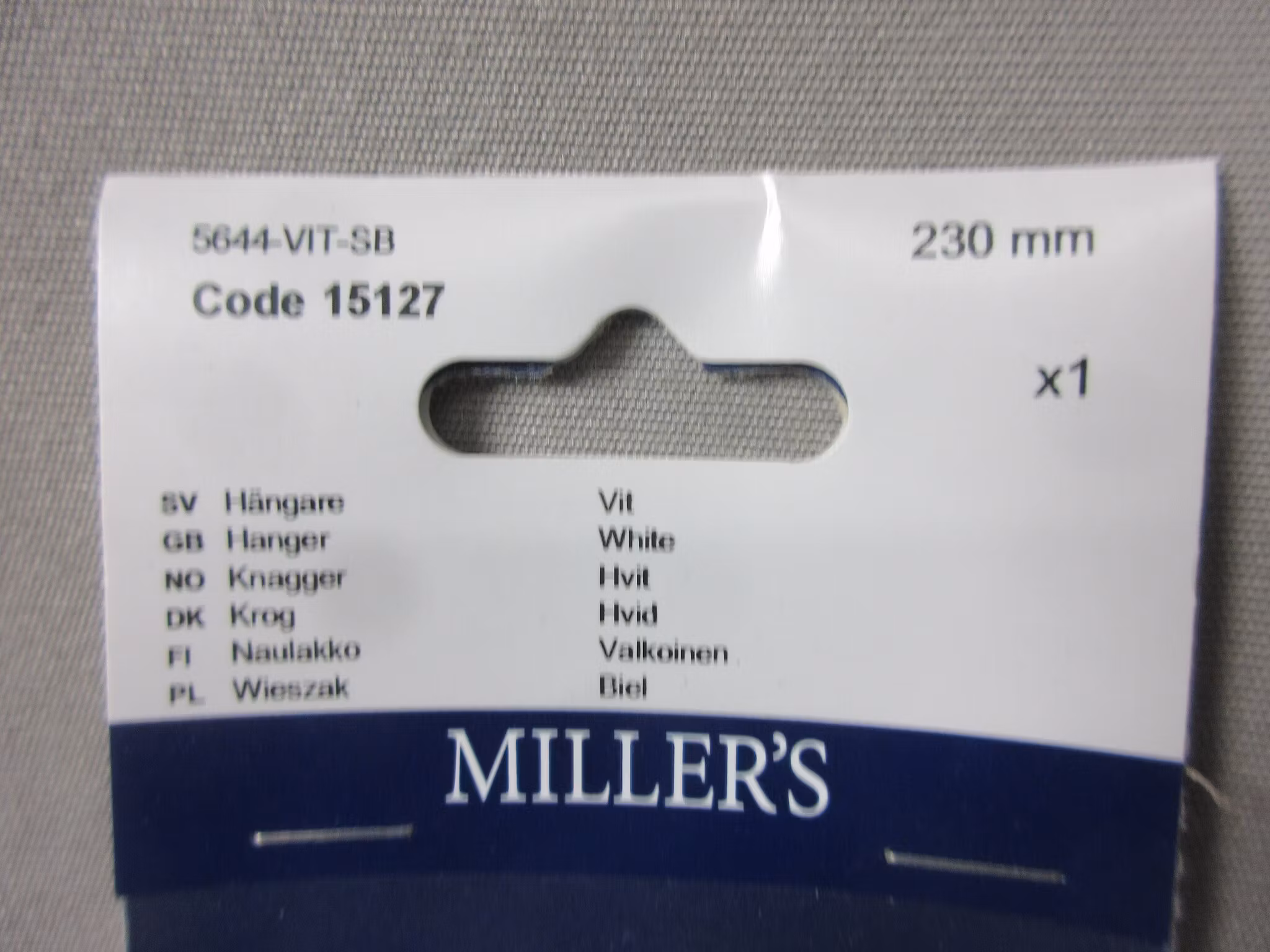 Millers Hängare Vit 15127. 230 mm