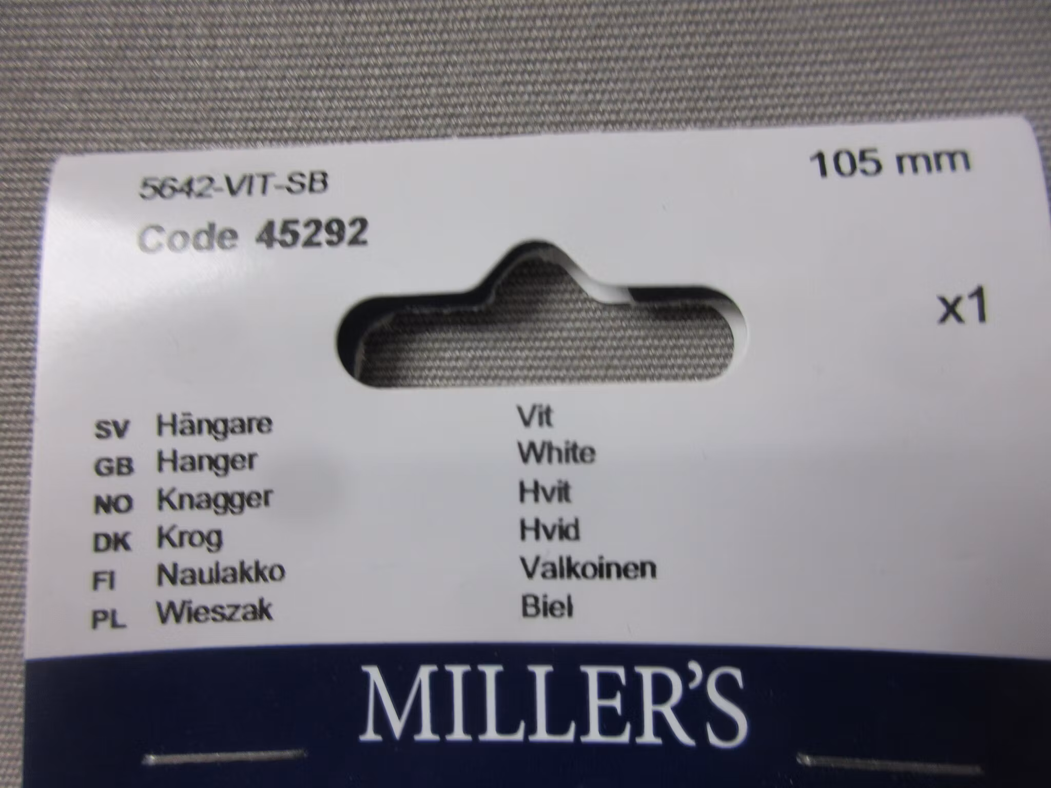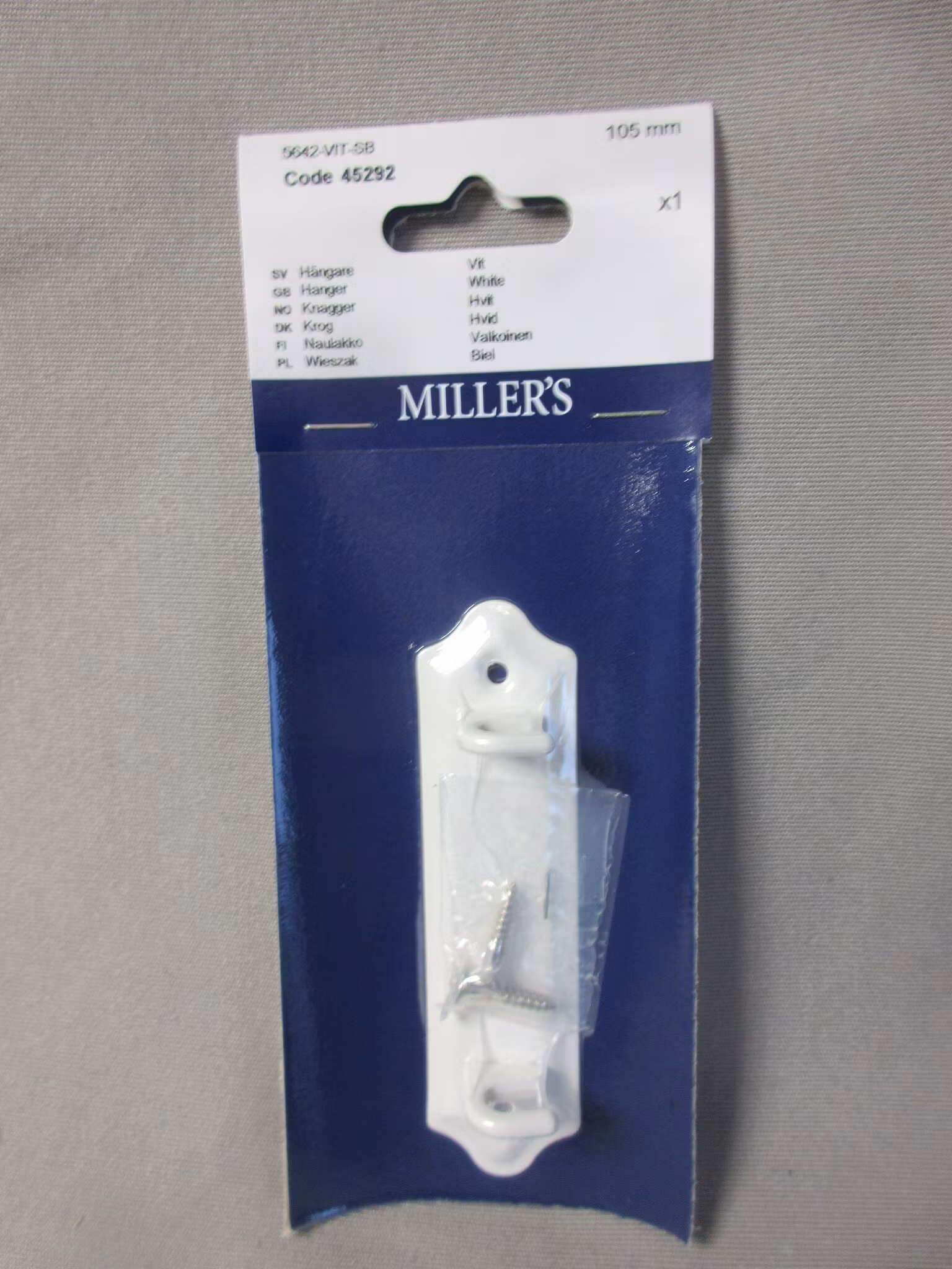 Millers Hängare Vit 45292. 105 mmDubbelkrok av vitlackerad aluminium.Denna klassiskt designade dubbelkrok kan användas för att hänga upp mindre föremål i ditt h