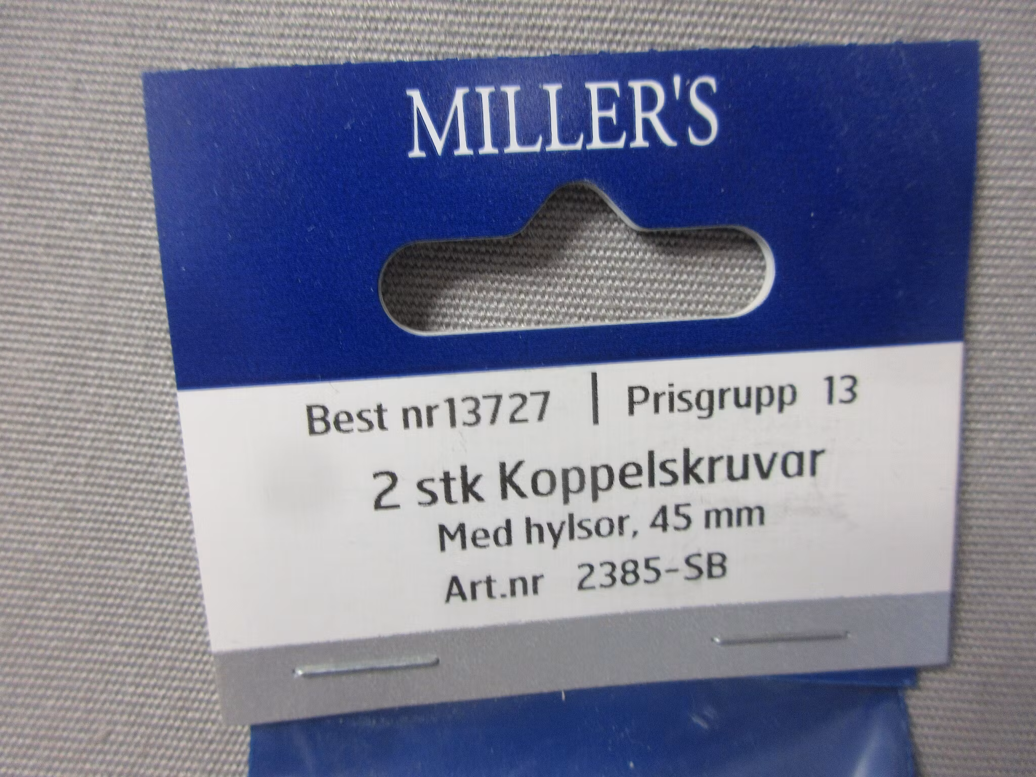 Millers Koppelskruvar med hylsor 45 mm. 2 st.