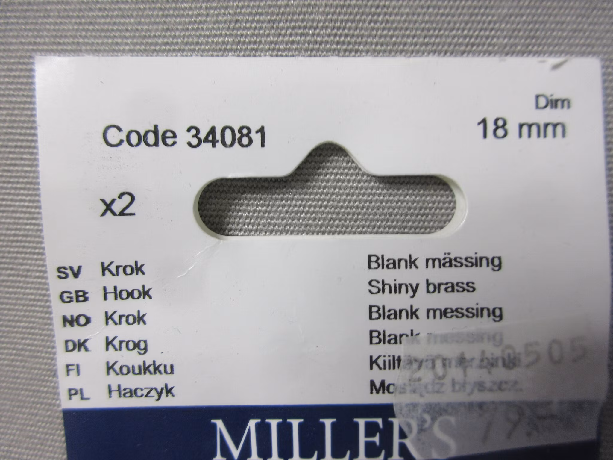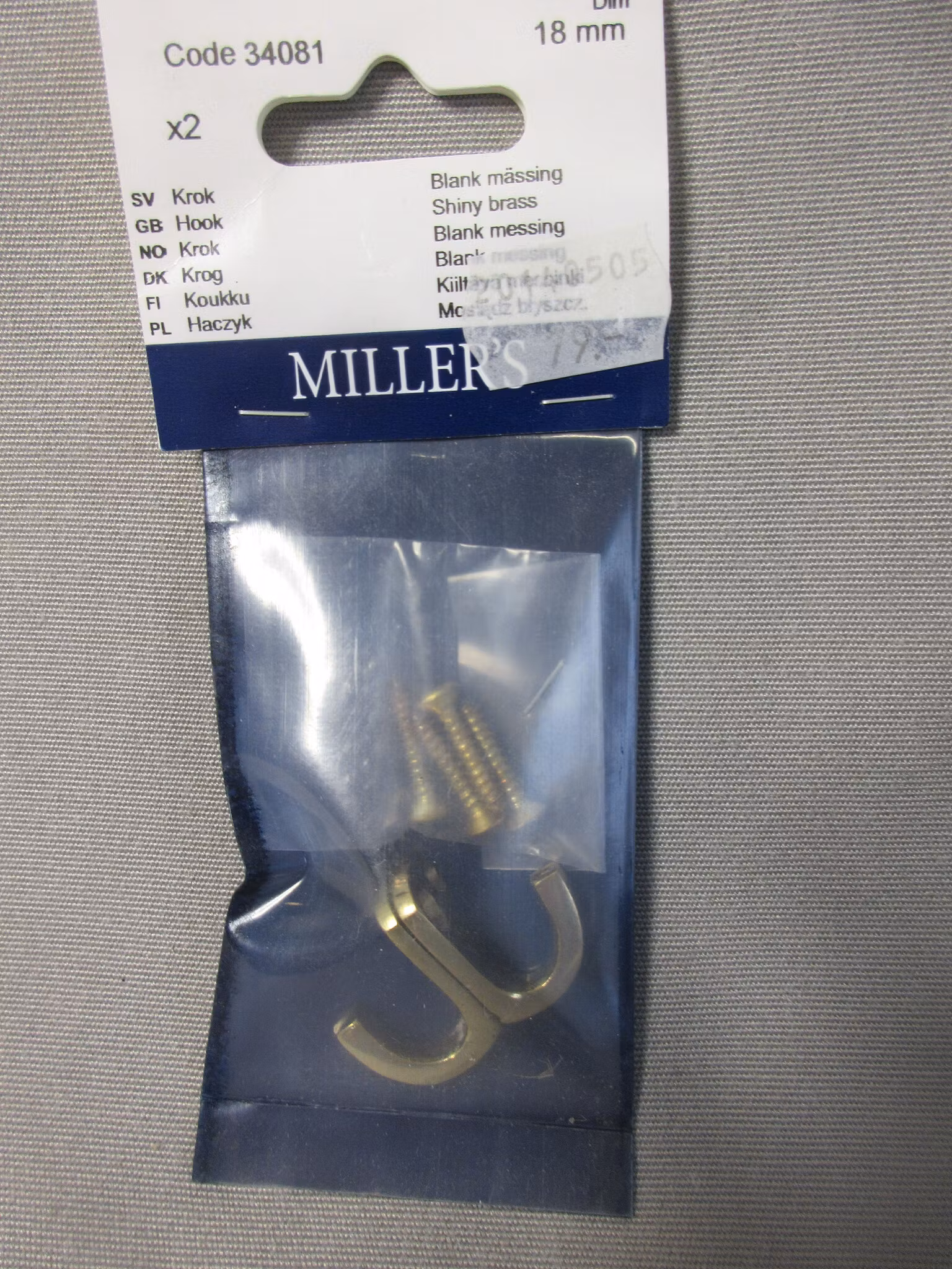 Millers Krok 18 mm. Blank Mässing 34081. 2 st.Code 340816308-MP-SBSkruv ingår: Ja
