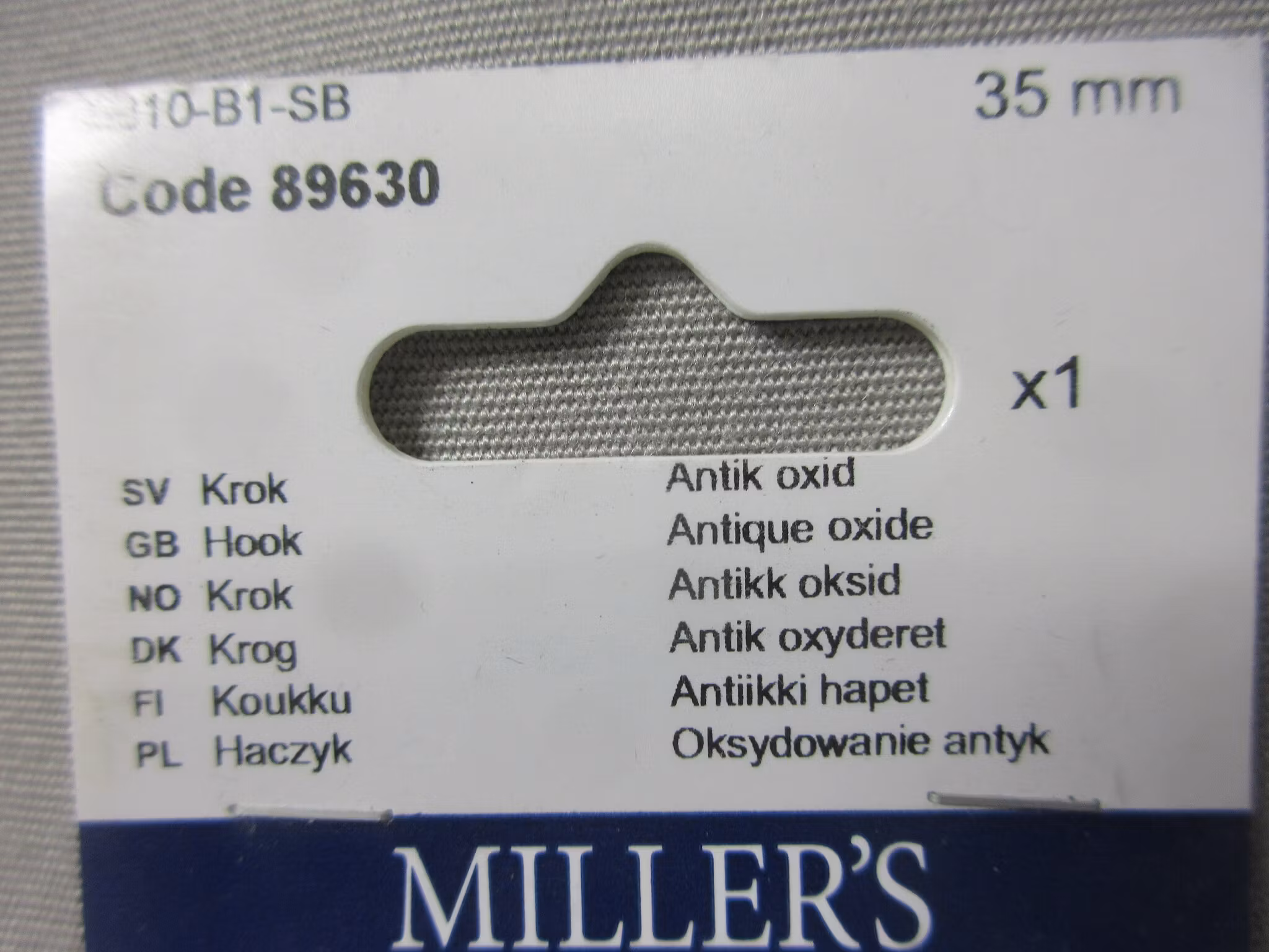 Millers Krok 35 mm. Antik oxid 89630. 1 st.Höjd 35 mmMontering SkruvasCode 89630Skruv ingår: Ja