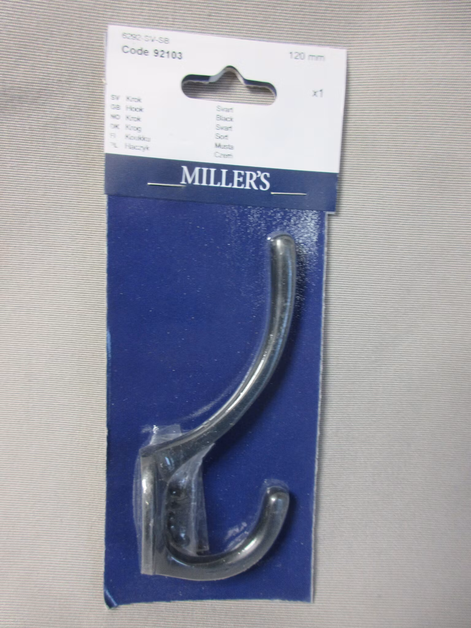 Millers Krok Dubbel Svart 92103. 120mm.Code 92103Bredd: 26mmHöjd: 120mmFärg: SvartUtsprång: 55Huvudmaterial: MässingETIM-klasskod: EC012075Skruv ingår: Ja