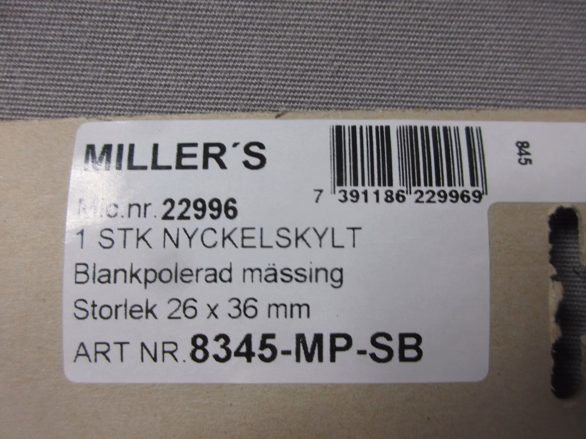 Millers Nyckelskylt Blank Polerad mässing 26x36 mmMic. nr 22996Skruv ingår: Ja