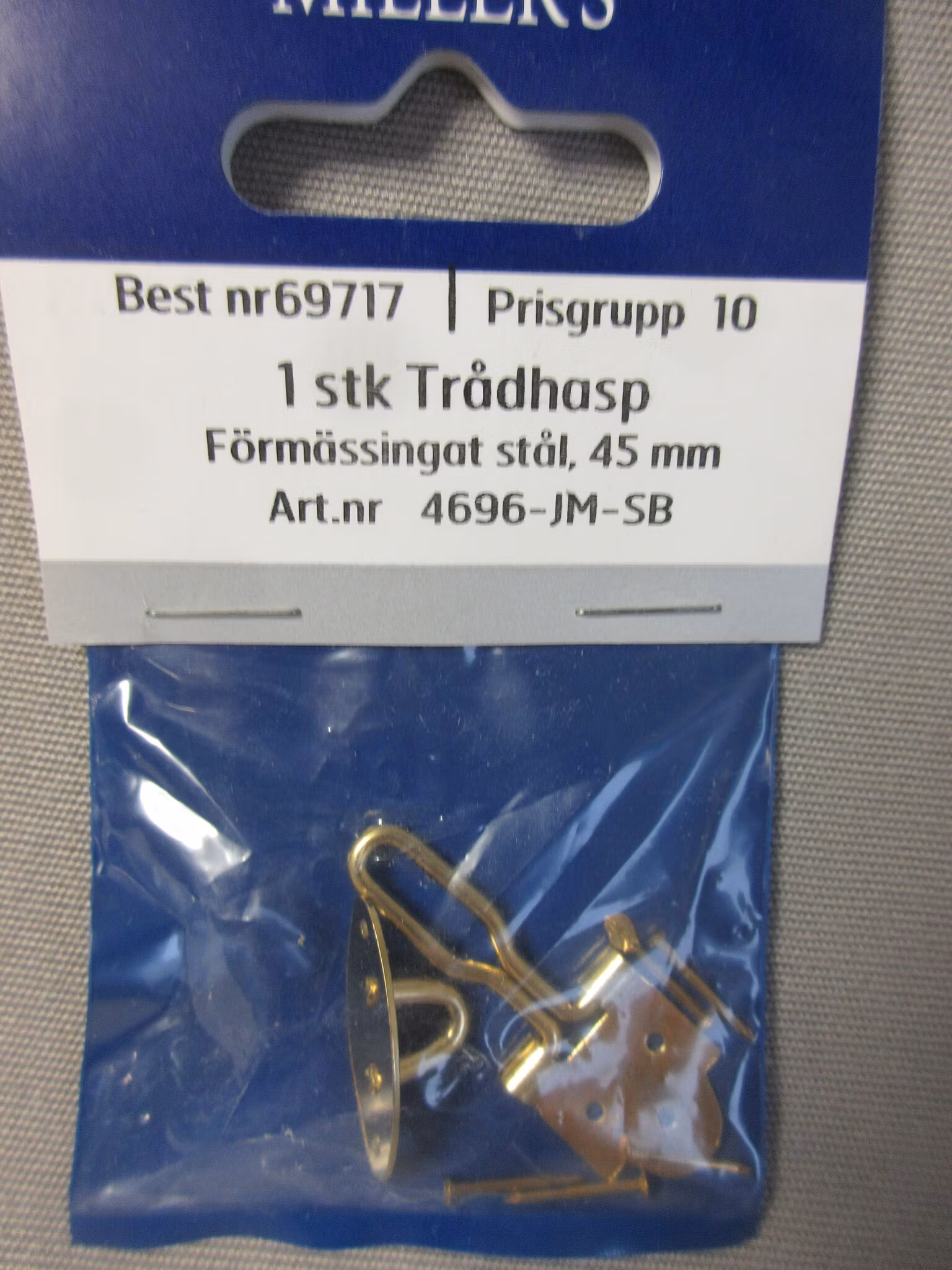 Millers Trådhasp Mässing 69717. 45 mm.Bestnr 69917Förmässingat stål, 45 mm