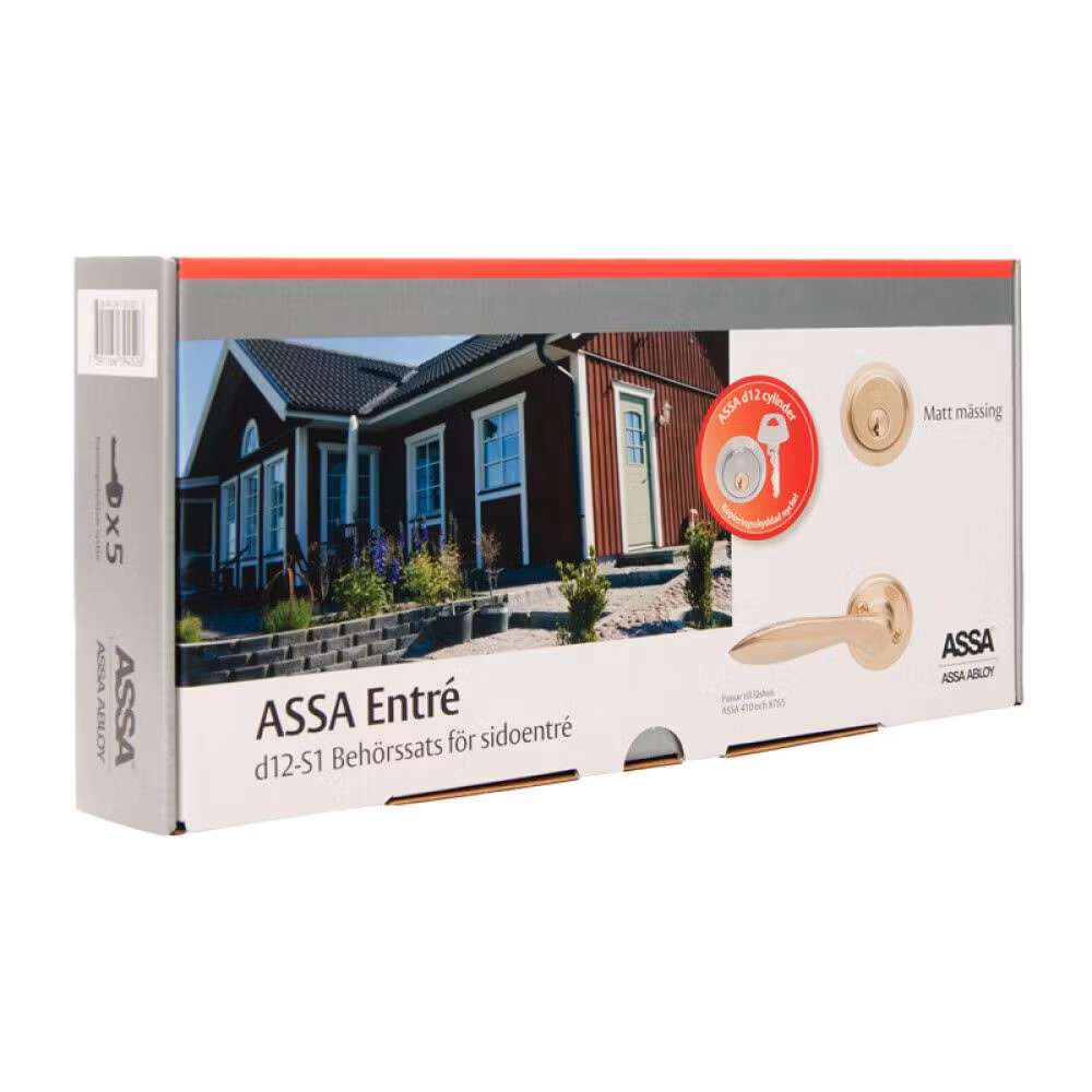 ASSA ABLOY Låssats entré D12-S1 ytterdörr Matt mässing