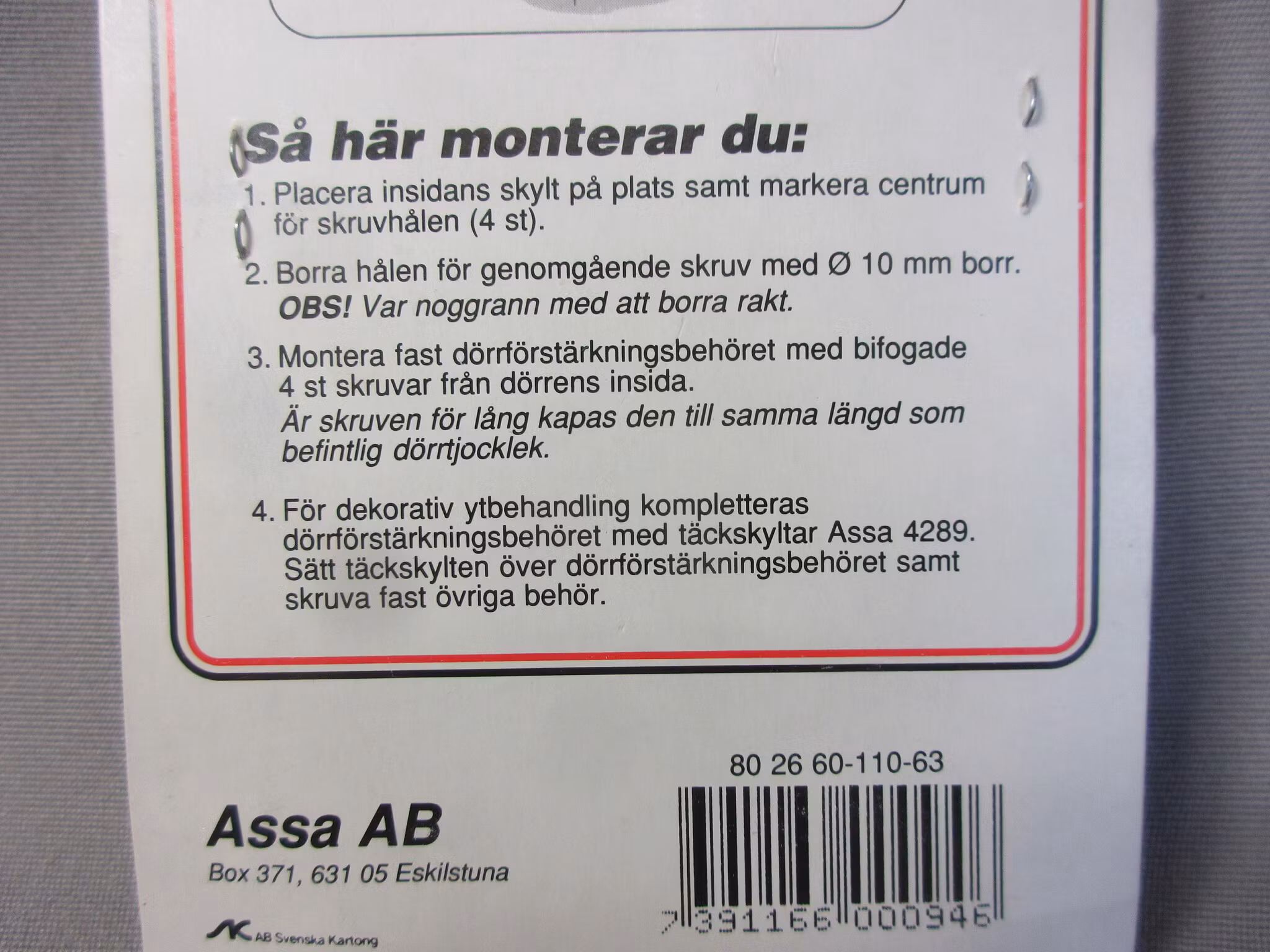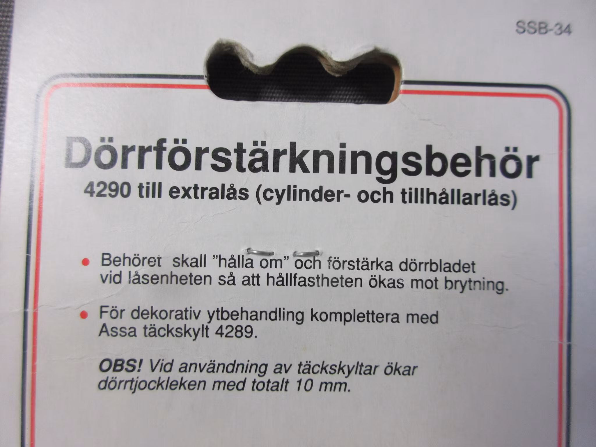 Dörrförstärkning ASSA 4290 är ett dörrförstärkningsbehör till cylinderlås för dörrar där krav på godkänd låsenhet ställs. Monteras med 4 st genomgående skruv.