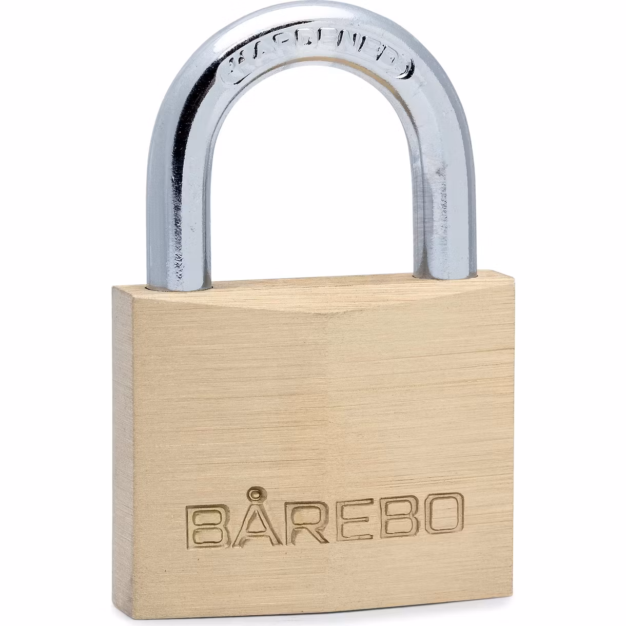 Hänglås standard Bårebo. Mässingshänglås med härdad bygel. Med 3 nycklar per lås. Dubbel låsning av bygeln. SB-förpackad.
