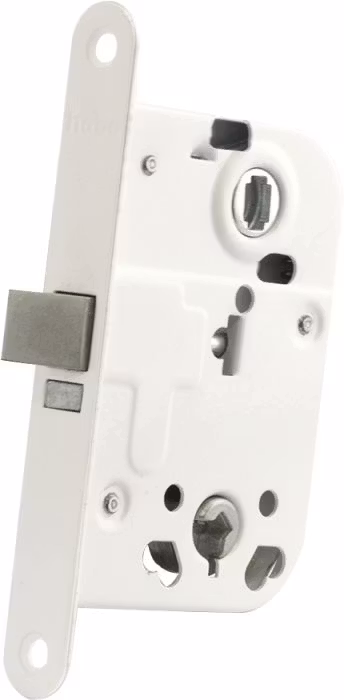 Habo Innerdörrlås 62014 VitSymmetriskt låshus av stål för innerdörrar samt wc-dörrar. Levereras med nyckel och skruv. Vändbart tryckesfall för höger- eller väns