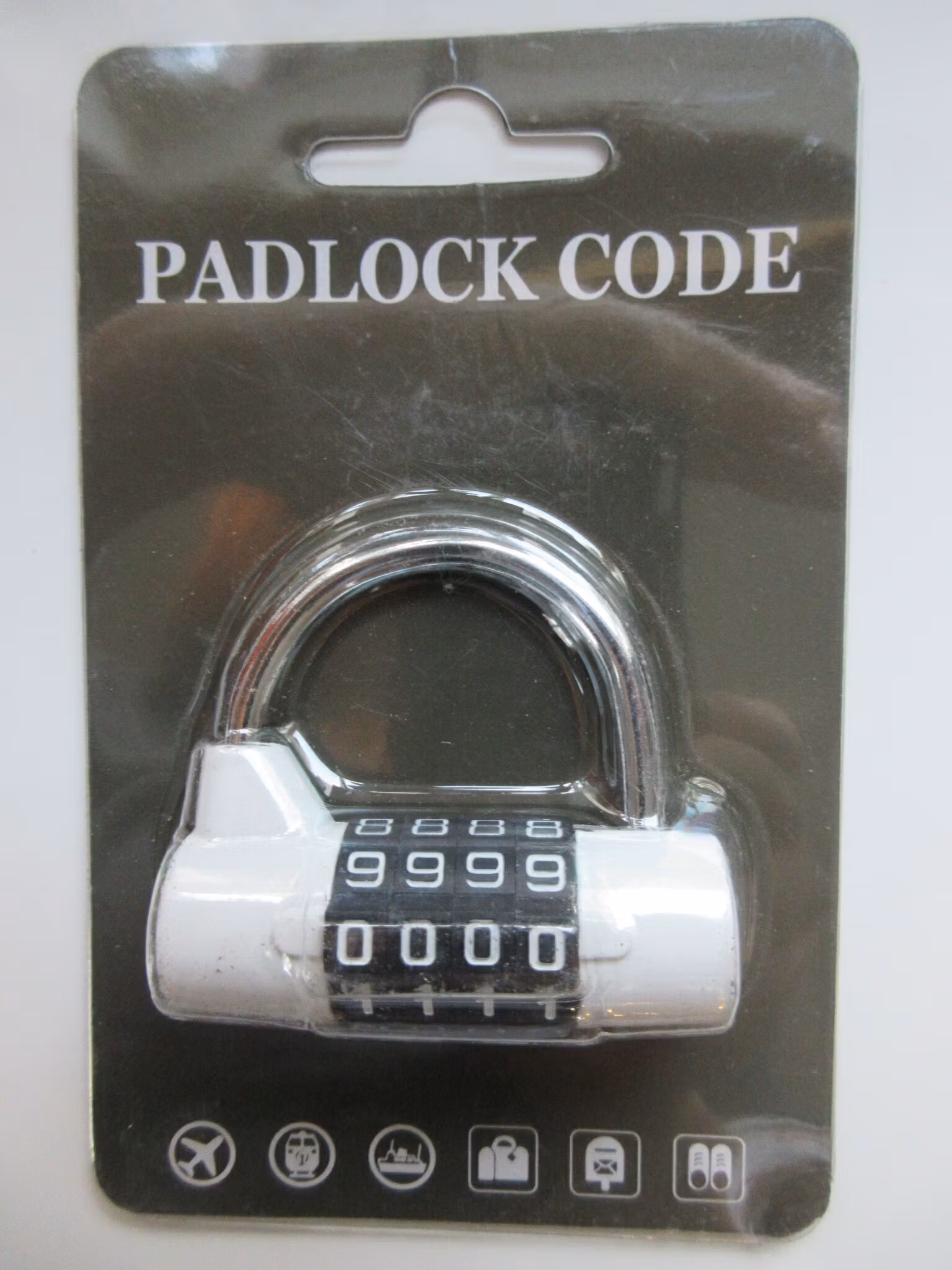 Hänglås 4-siffrigt lås, bredd 54 mm. Vit, 88024-1