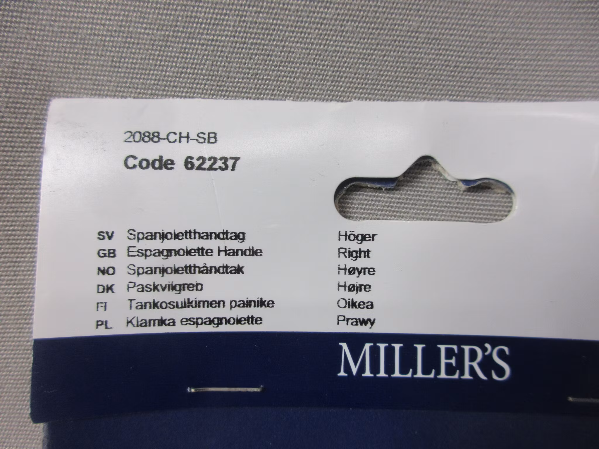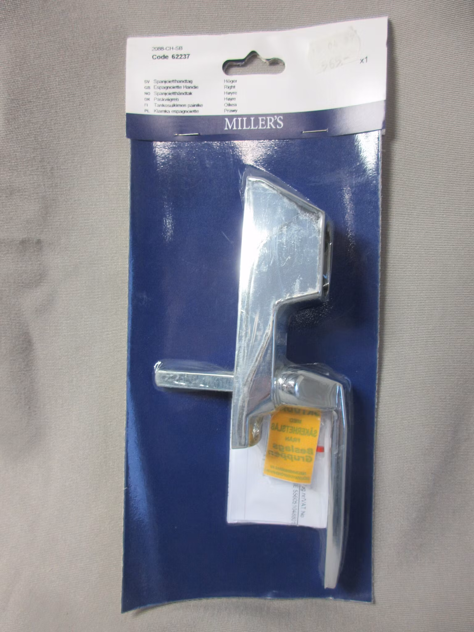 Millers Spanjoletthandtag Höger BlankkromFönsterhandtag i zink för fönster, altan och balkongdörrar.Code 622377391186622371