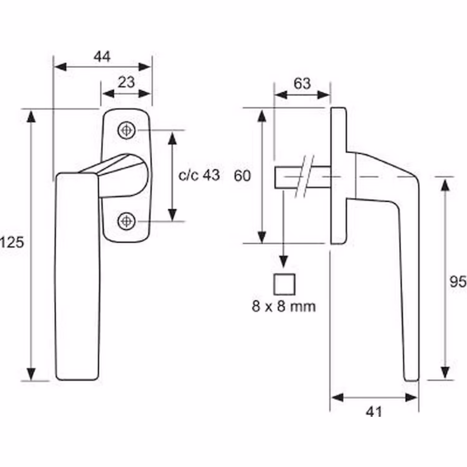 Fönsterhandtag i zink för fönster, altan och balkongdörrar.