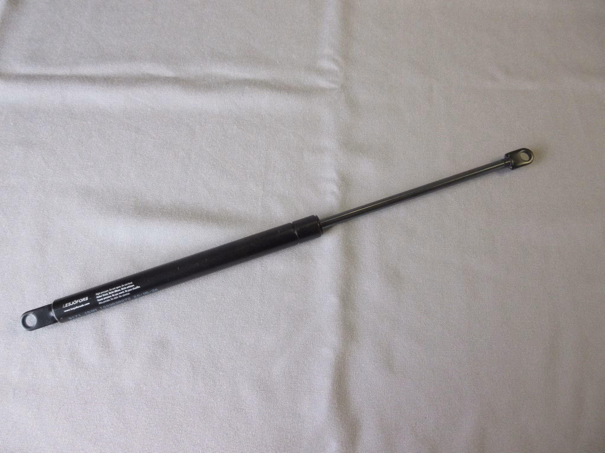 Konventionell gasfjäder med svetsade öglor, utskjutningsfart ~0,3 m/s