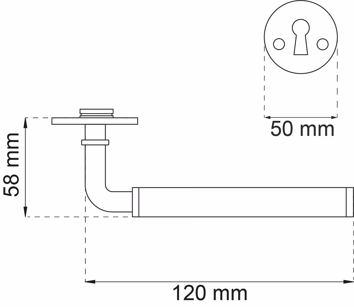 Dörrhandtag av zink med plastgrepp. Elegant handtag som ger retrokänsla. Passar till dörrtjocklek 38-42 mm. Utsprång 58 mm.