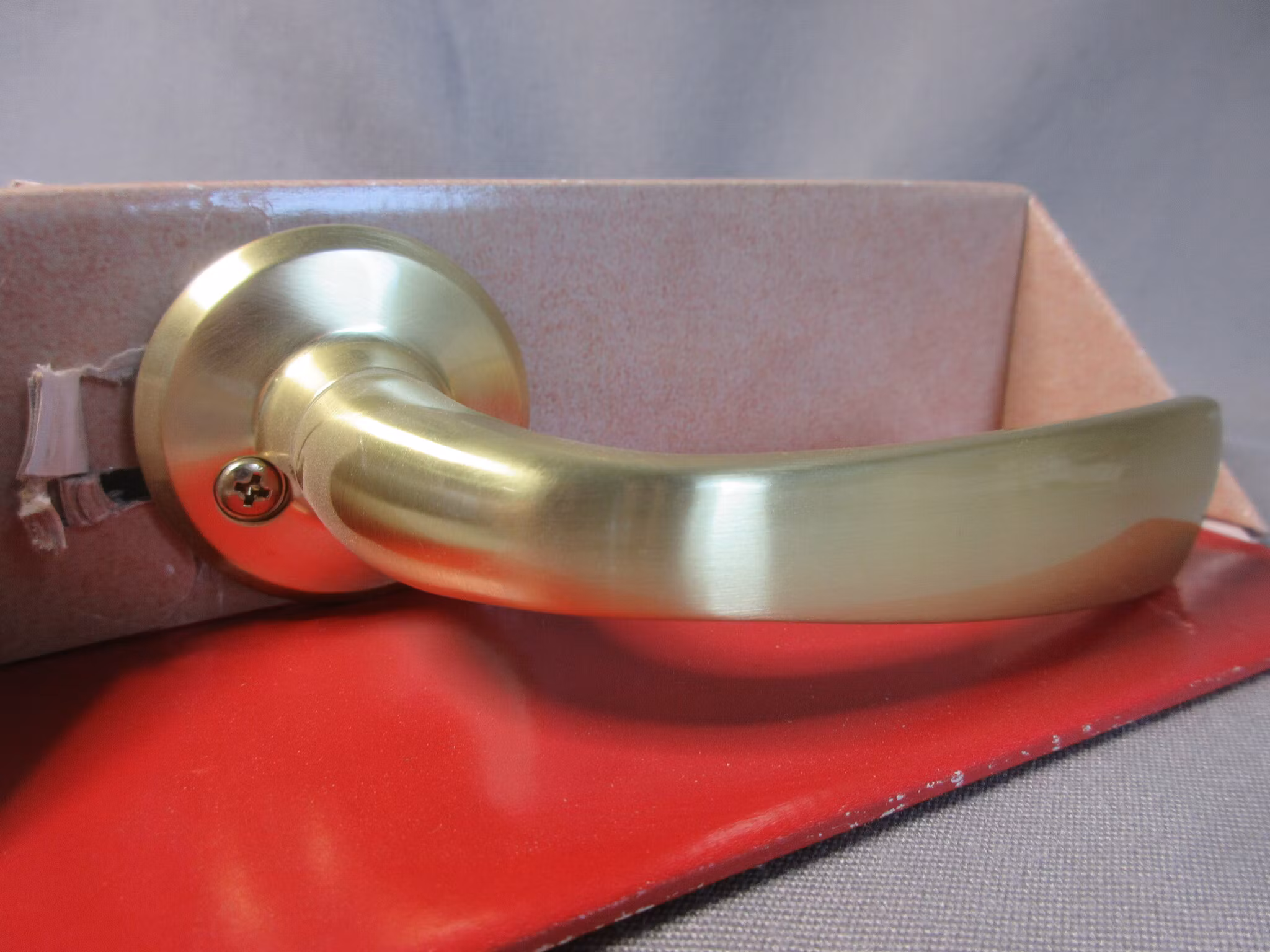 Dörrhandtag av mässing med dubbelverkande returfjäder, avsett för ytterdörr med modullåshus. Massivt och kompakt handtag med modern design. Med sin dubbelverkande returfjäder fungerar handtaget också med låshus där regling sker genom att handtaget lyfts. Passar till dörrtjocklek 38-80 mm. Utsprång 62 mm. Finns också som innerdörrshandtag.