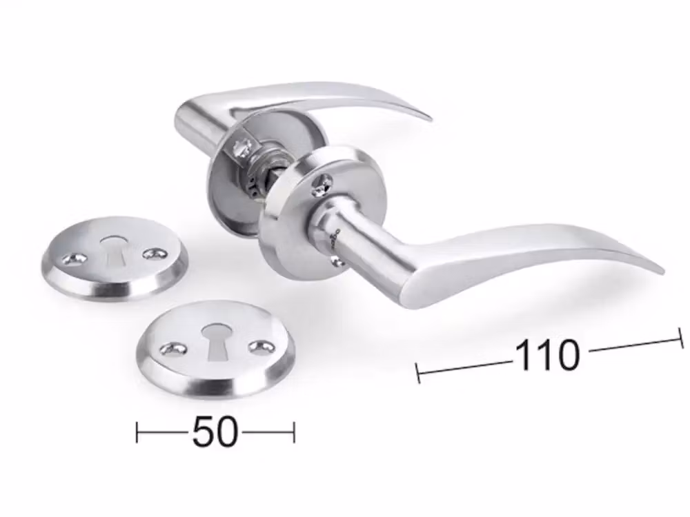 Dörrhandtag och nyckelskylt av mässing. Passar till dörrtjocklek 38-42 mm. Utsprång 50 mm.