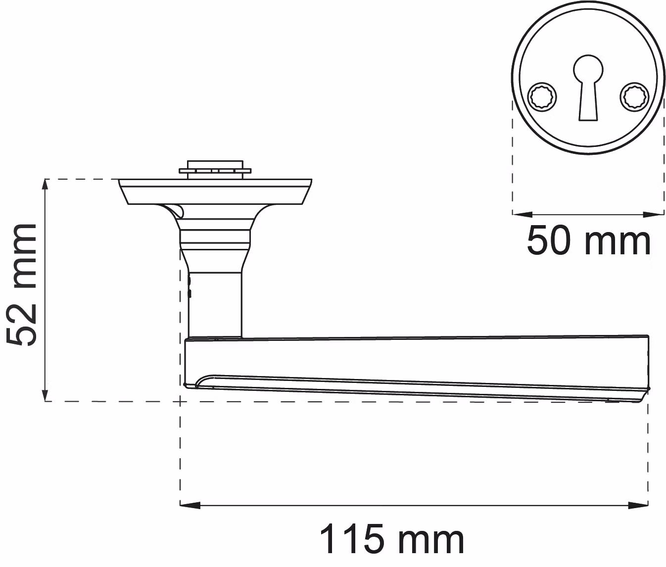 Dörrhandtag av zink/zamak. Traditionellt handtag med lantlig karaktär. Passar till dörrtjocklek 38-42 mm. Utsprång 52 mm.
