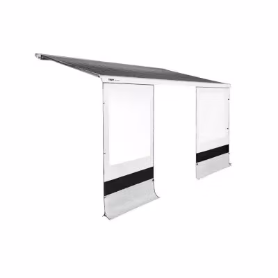 En insynsskyddande frontpanel som passar Thules markiser och skyddar mot vind och regn.
