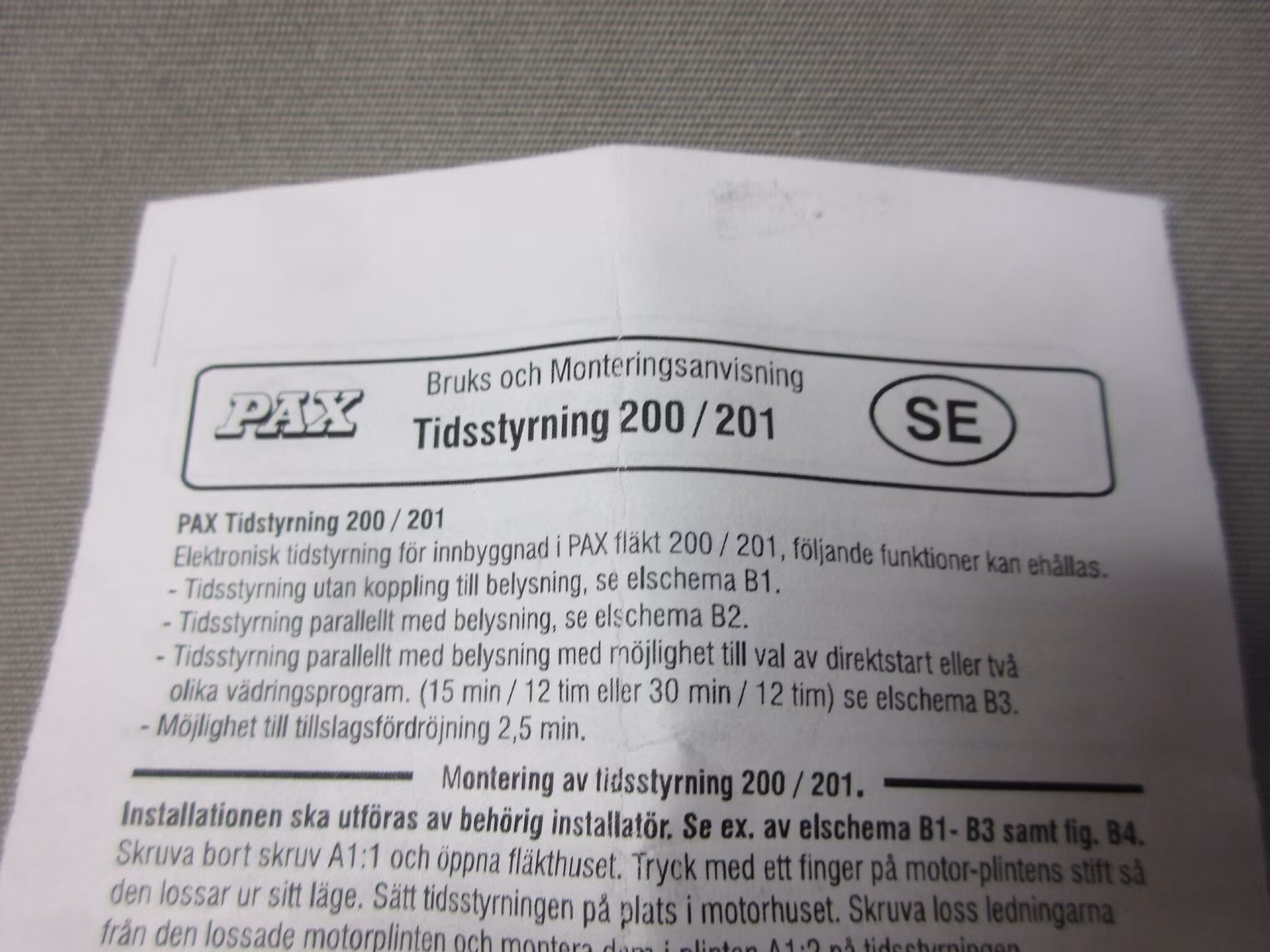 Tidsstyrning till PAX 200/201PAX -nr 8103-1Ean 7391477810319