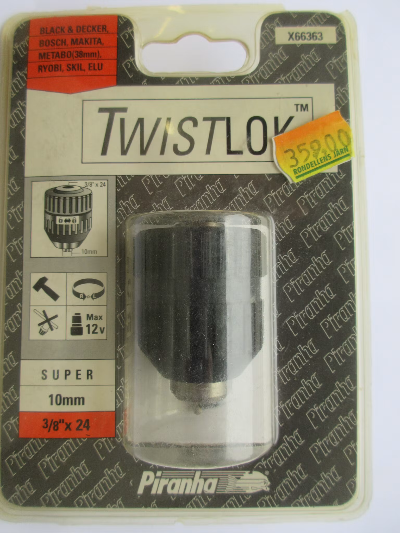 Piranha Snabbchuck 3/8" x 24, X66363Piranha TwistLok Keyless Chuck For Cordless Drills 10mm, 3/8" x 24, 10mm X663635011402325900