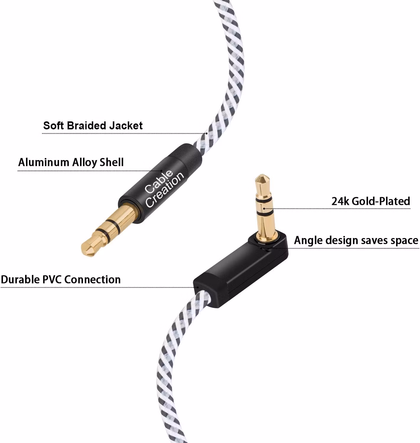CableCreation 2-pack Audio Stereo Cable, 3,5 mm. Male to male Angle