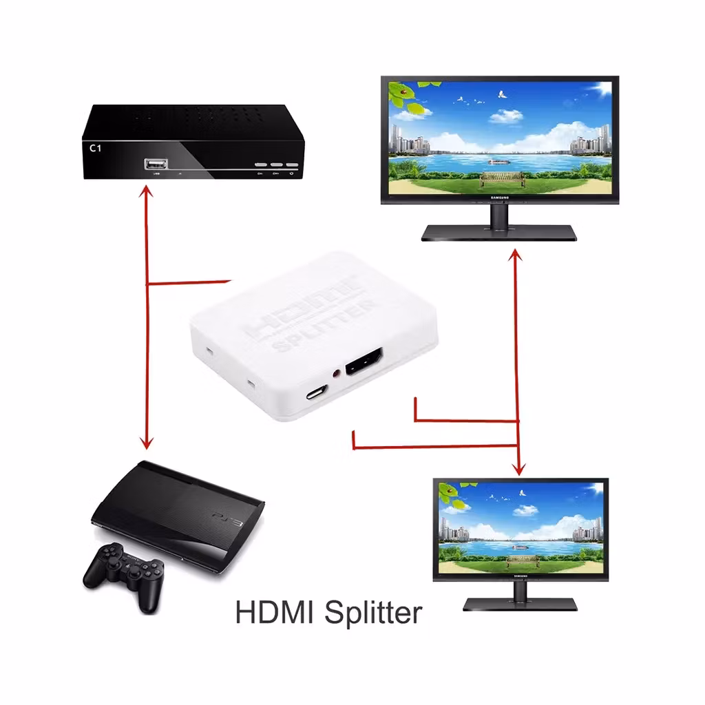 HDMI splitter 2xHDMI-utgångar 1080P 4K, Vit