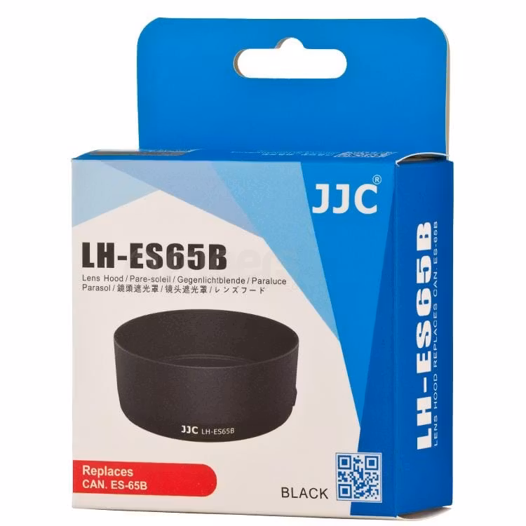 The non-glare matte finish on the inside further prevents or limits lens flare. No vignetting will show with the hood on. The hood can also be placed backwards over the lens for more compact storage. The hood allows you to put on a Ф43mm filter and a Ф43mm lens cap. With the extended lens end, you will also benefit from extra protection from accidental impact. JJC LH-ES65B BLACK replaces Canon ES-65B lens hood.