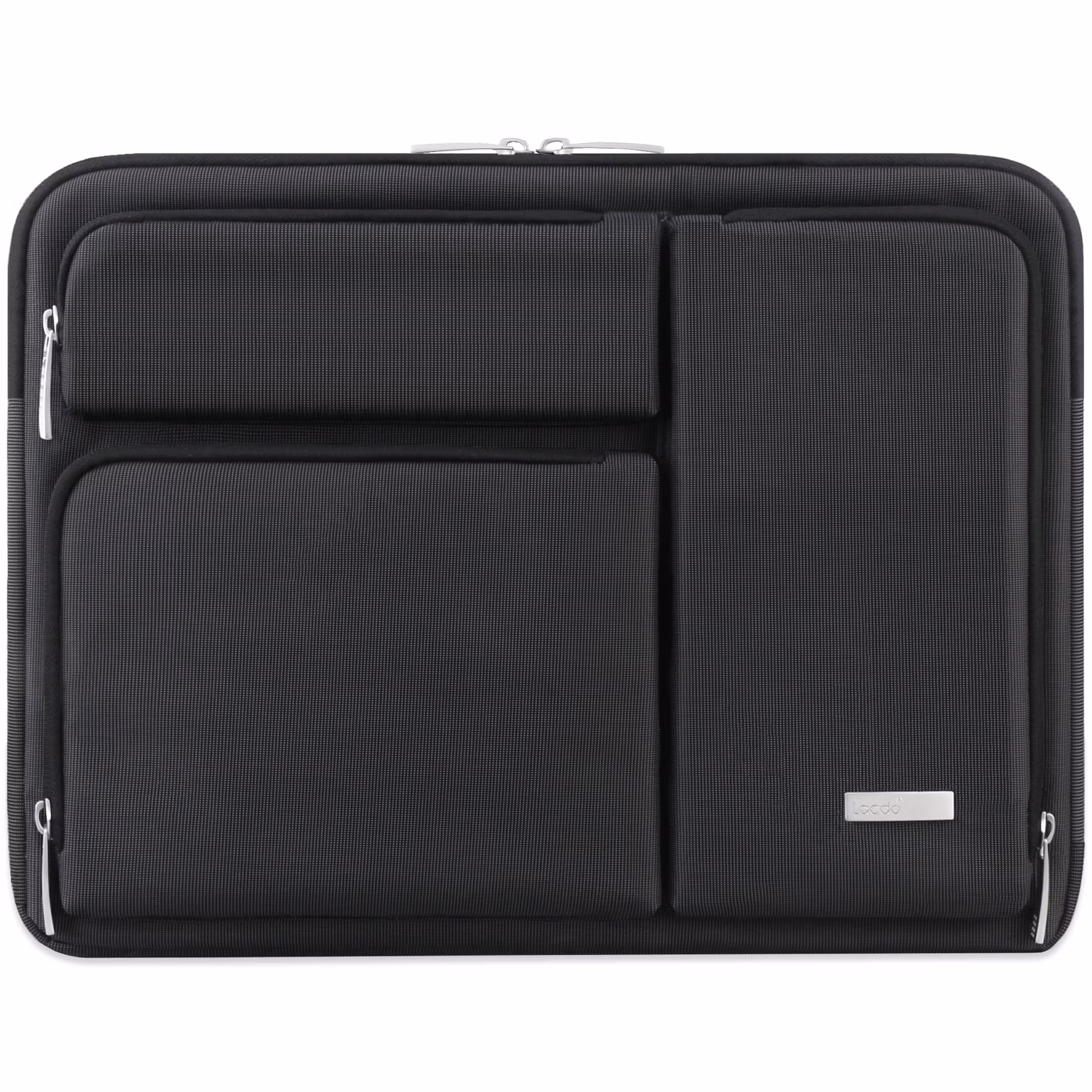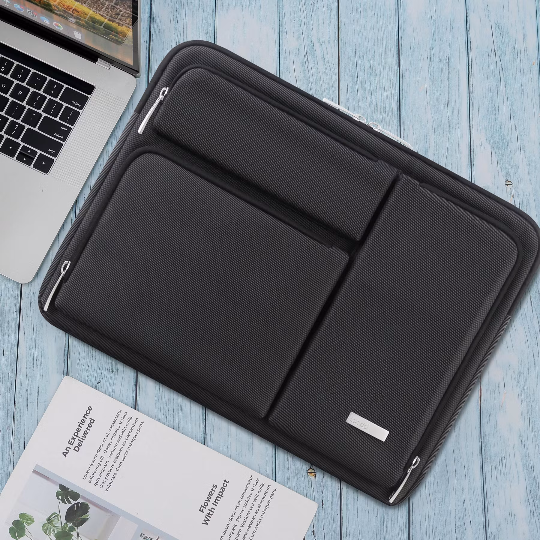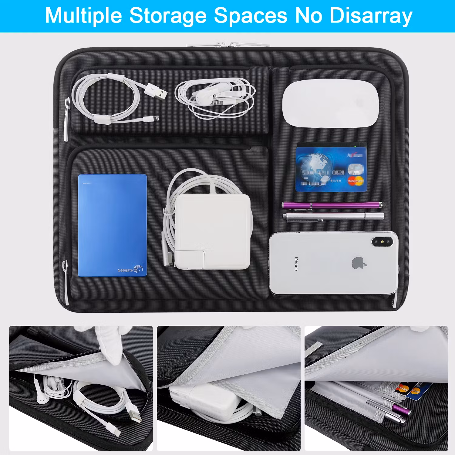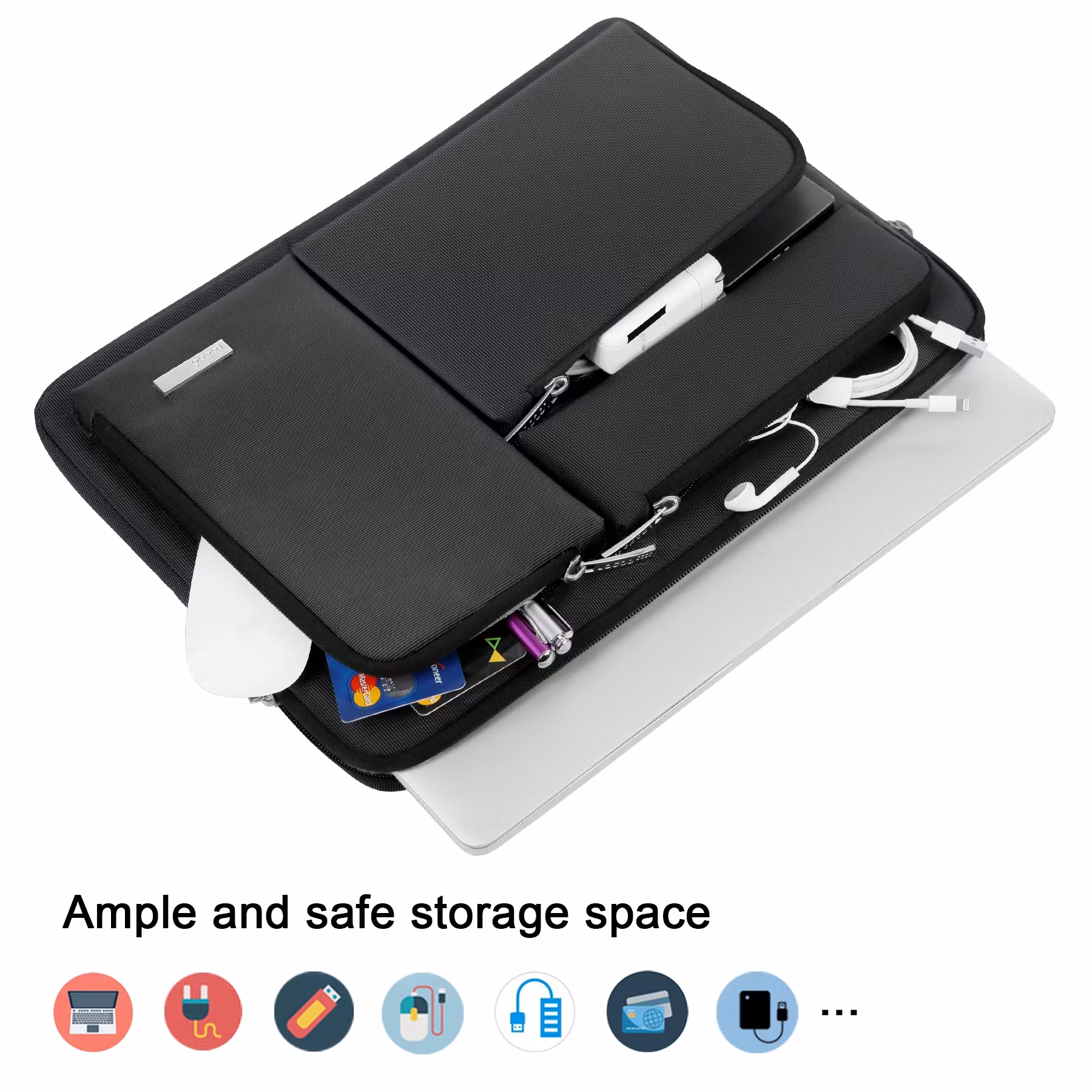 TILRÄCKLIGT UTRYMME OCH MJÄTT DRIDSLÄCKNING - Extra fyra fickor, Tillräckligt med utrymme för att hålla pennor, mobiltelefon, kablar, laddare, powerbank etc.. Den högkvalitativa dragkedjan glider smidigt, vilket gör det bekvämt för dig att använda din bärbara dator.