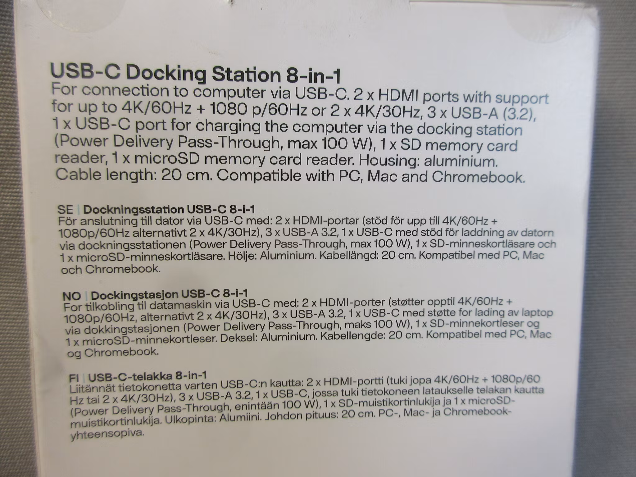8-i-1 USB hub – komplett dockningsstation för din bärbara dator.