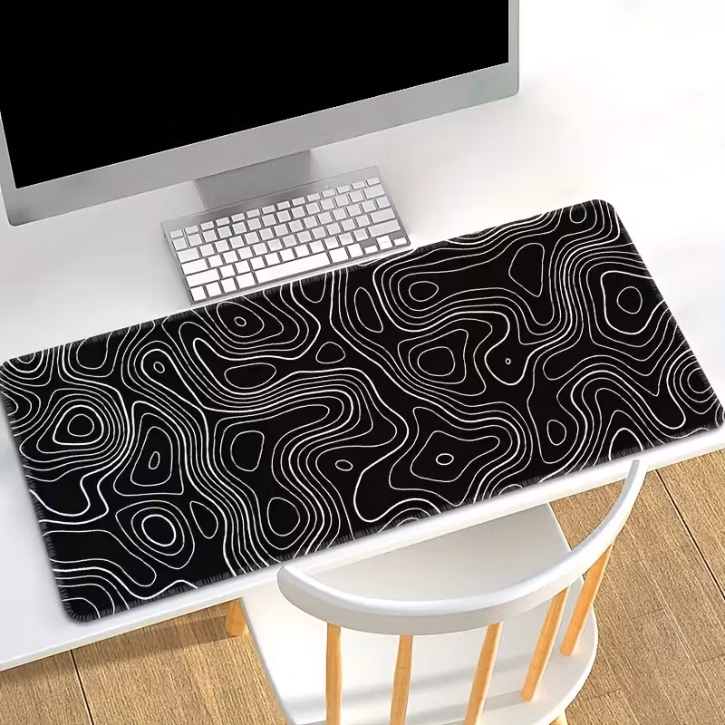 En musmatta i gummi med utökad yta, mönster terränglinjer, passar som skrivbordsunderlägg, vattentätt laptop-skrivunderlägg för arbete, spel, kontor.