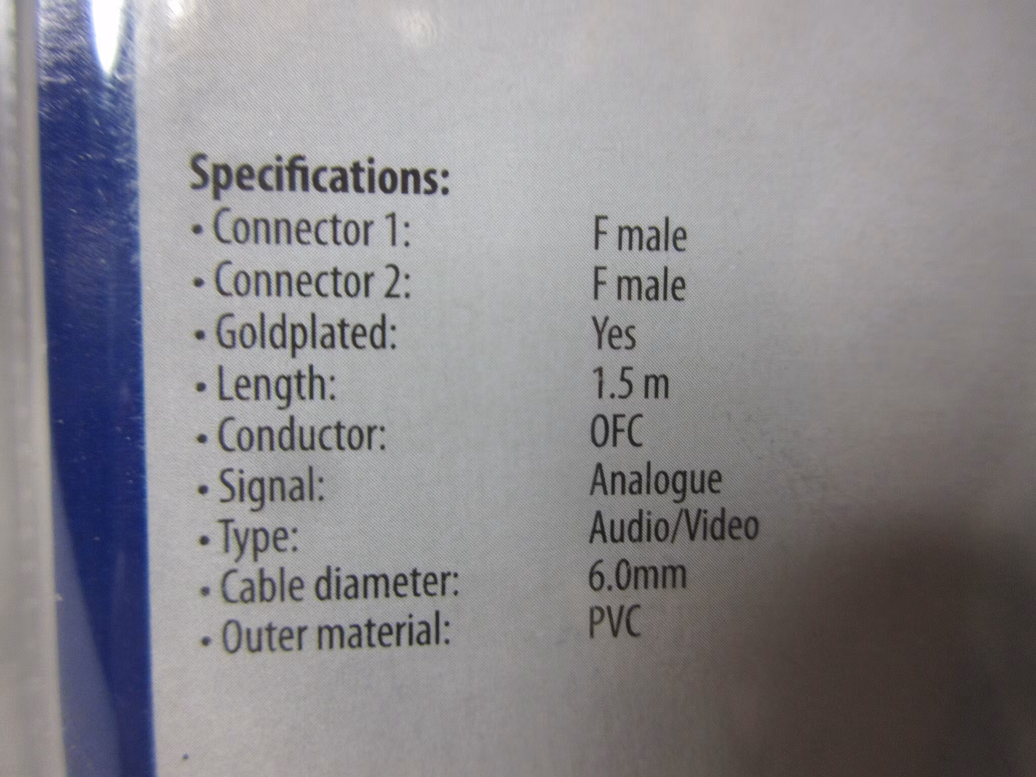 HQ Aerial Cable F-connector- F-connector 1,5 m.HQSAE-510-1,5EAN 5412810144235