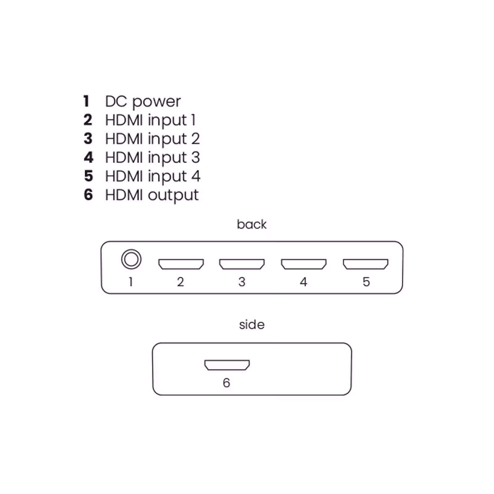 Marmitek Connect 740 – HDMI-switch 8K 60Hz – 4K 120Hz – HDMI 2.1 – 4 in / 1 ut. Videoporttyp: HDMI. Produktfärg: Svart, Maximal uppdateringsfrekvens: 120 Hz, Bandbredd: 48 Gbit/s. Nätadapterns inspänning: 100 - 240 V, Nätadapterns frekvens: 50/60 Hz, Nätadapterns utgångsspänning: 5 V. Bredd: 120 mm, Djup: 78 mm, Höjd: 17 mm. Paketbredd: 130 mm, Paketdjup: 70 mm, Pakethöjd: 155 mm