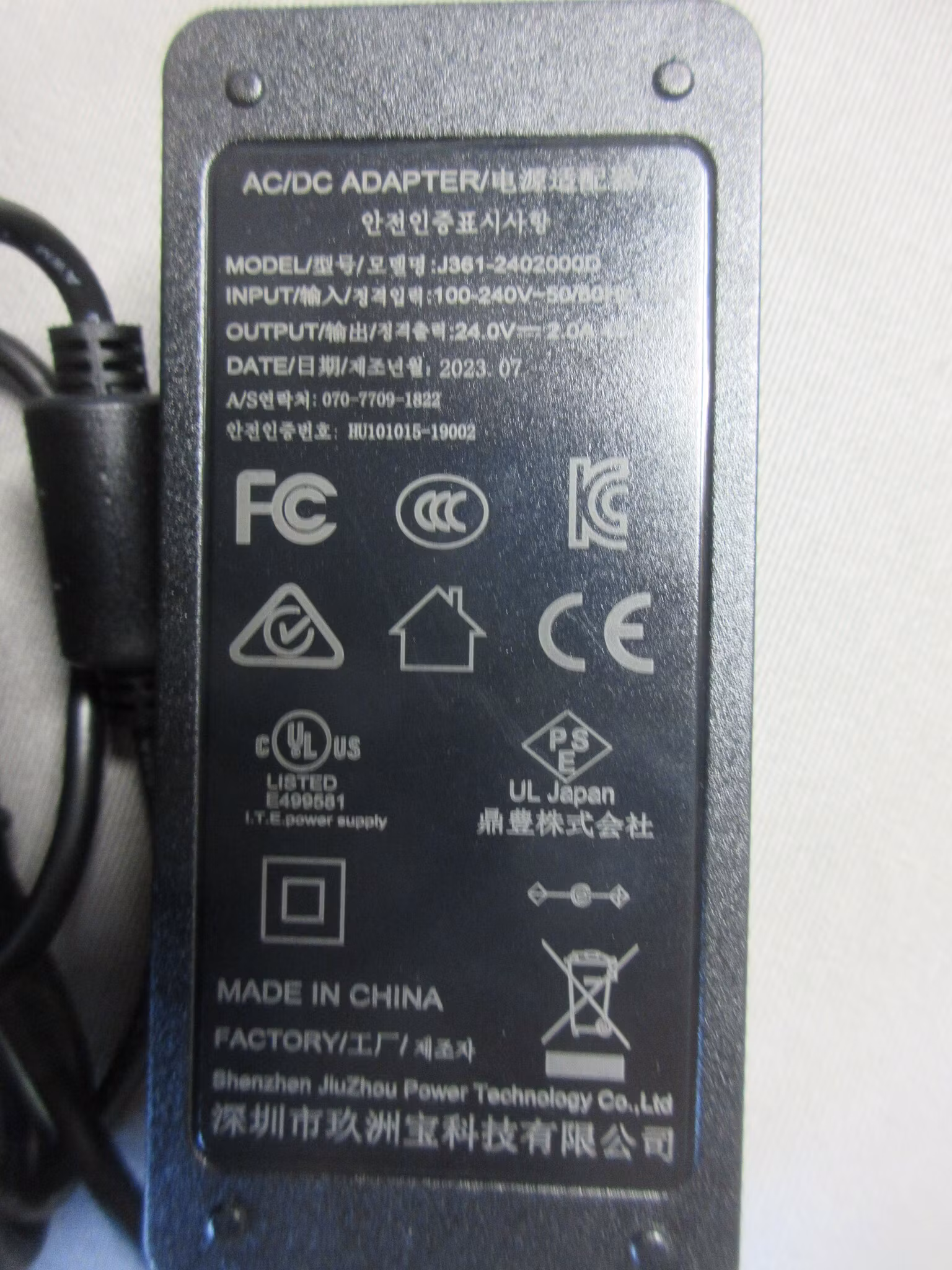 AC/DC Adapter J361-2402000DModel J361-2402000DInput 24,0V. 1.5AOutput 24.0V. 2.0A 48.0WBredd 100 mmDjup 45 mmHöjd 33 mmOBS Strömkabel medföljer ej