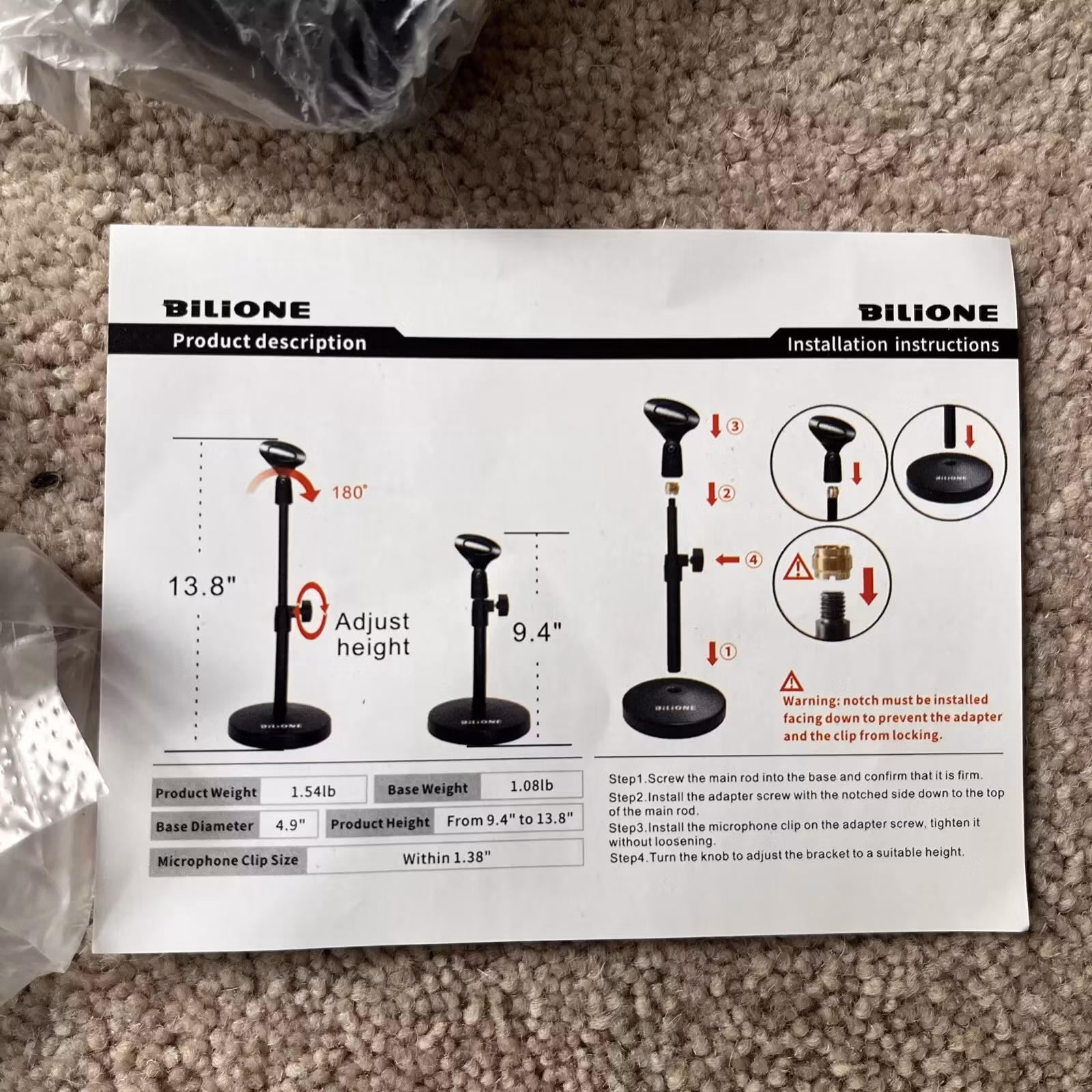 Bilione Professional Desktop StandMultifunktion: Skrivbordsmikrofonstativet kan också användas som mobiltelefonstativ genom att byta ut klämman.