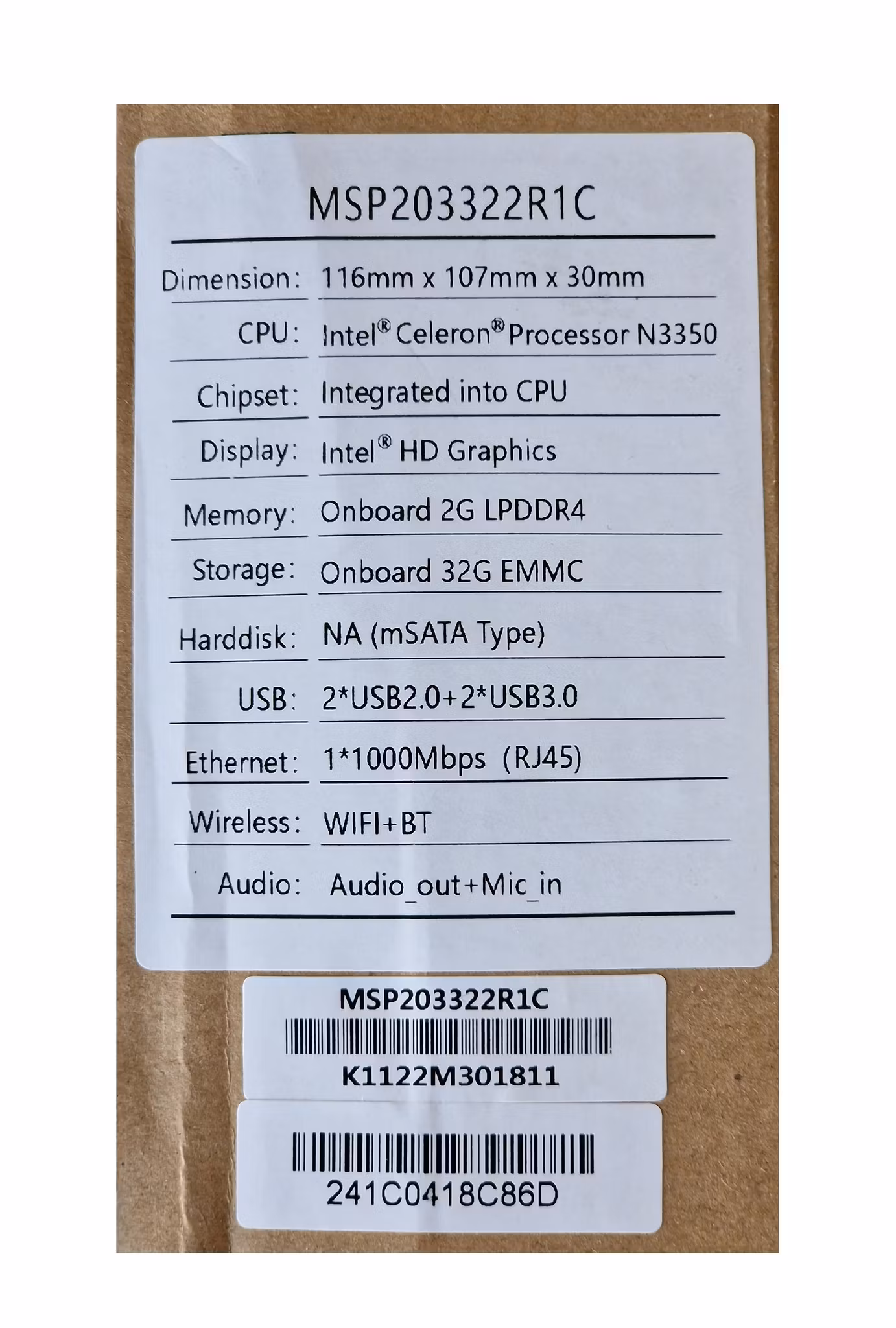 GIADA Tiny VM23 Intel Cel N3350CPU: Intel N3350FläktlösInklusive: 2GB RAM, 32GB eMMC, VESA-fästeDC-IN 12VTillverkare: GiadaSe bilder för mer info.