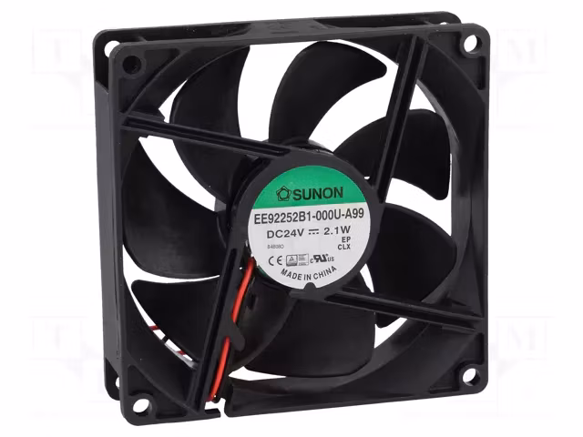 Sunon Likströmsfläkt EE92252B1-000U-A99IT-007545EE92252B1-000U-A99DC24V2.10WFläkt Tubeaxial 24VDC Fyrkantig - L 92mm x H 92mm Kula 51,5 CFM (1,44m³/min) 2 trådl