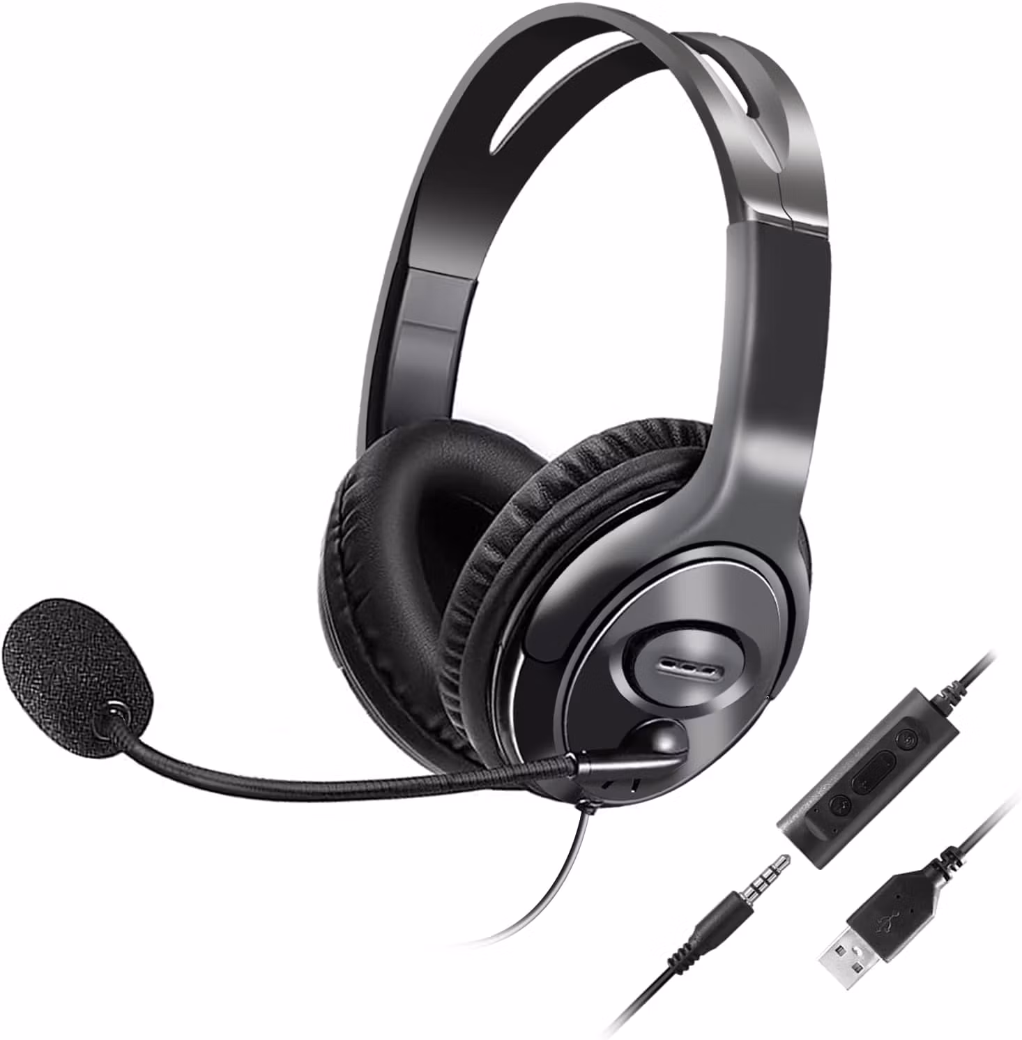 One-Button Outline: 108U USB-headsetet har olika pluggstilar, men funktionerna hos den inbyggda kontrollern är alla desamma. Du kan snabbt justera volymnivån, stänga av ljudet med en knapp och slå på mikrofonen med en knapp. Bekvämt och snabbt, så att du kan justera arbetsstatusen för 108U-headsetet efter miljön.
