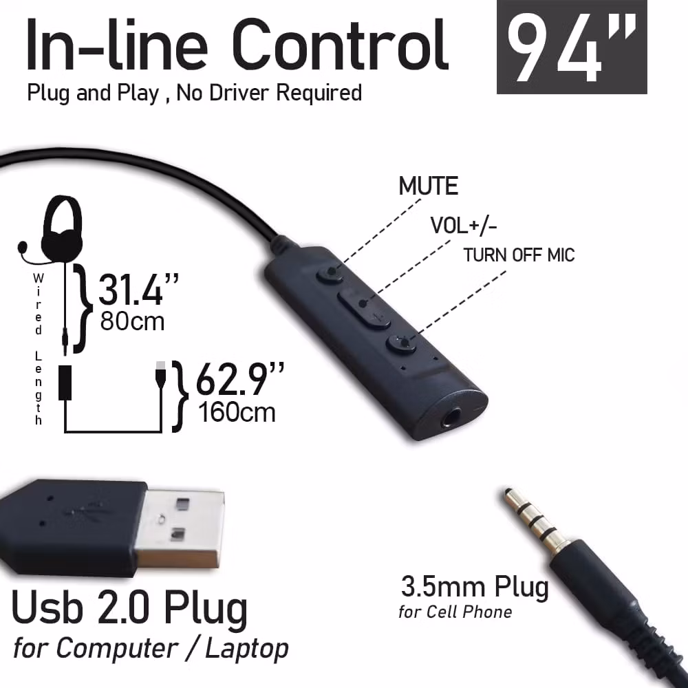 Lätt att använda: Plug and play, inga drivrutiner krävs, koppla bara in USB-kontakten på 108U-headsetet direkt till din dator, bärbara dator, stationära dator, Mac eller USB-kompatibel enhet och du är redo att använda. Om du väljer "3,5 mmDC+USB"-pluggversionen av 108U-headsetet kan du också använda 3,5mmDC-kontakten för att ansluta din kompatibla 3,5 mm-enhet (vanligtvis mobiltelefoner). 108 USB-headset för Dragon Nuance talking, Skype-chatt, Jabber, Microsoft Teams, Lync, Zoom, och är mycket effektivt vid inspelning, videokonferenser, telefonkommunikation och lyssna på musik. Obs: 3,5 mm DC-kontakten kan vanligtvis användas på datorer, men mikrofonen fungerar inte.