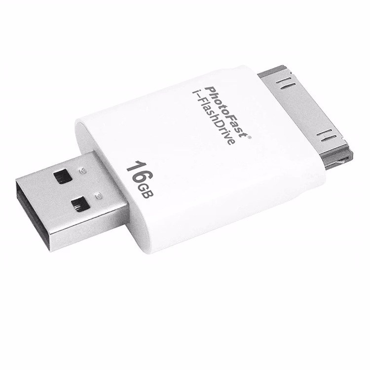 PhotoFast i-FlashDrive 16GBDimension: 35.4mm x 10.4mm x 67.5mmWeight: 20gCompatibility: iOS 5.0Windows XP/ Windows 7/ OS XSystem requirement: Free App from App
