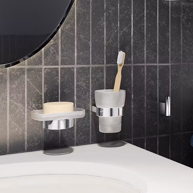 Hållare med tandborstglas, frostat glas, Smedbo AIR AK343 Krom