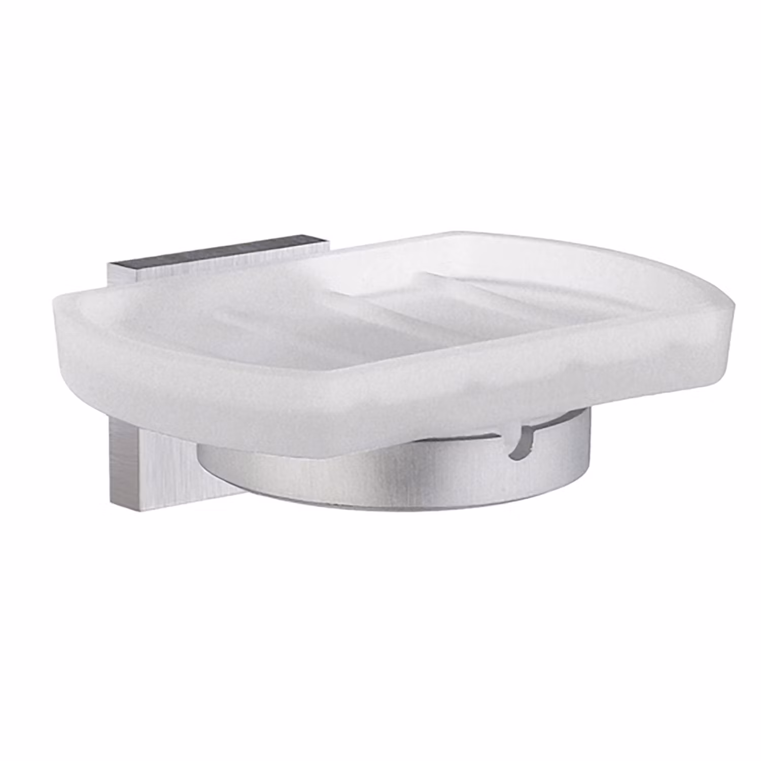 Hållare med tvålkopp i frostat glas, Smedbo HOUSE RS342 Borstad krom